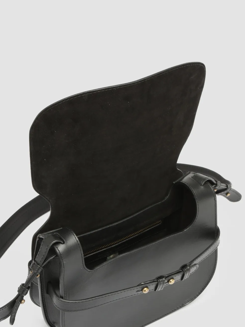 Our Saddle artisan bag is perfect to carry with you every day thanks to the vintage vibes versatile design. Expertly handcrafted from fine airbrushed leather in shades of black it features an adjustable shoulder strap horizontal strap that fit the size and secures the rounded front flap suede lining one internal zip pocket antiqued gold-tone metal hardware and contrasting edges.