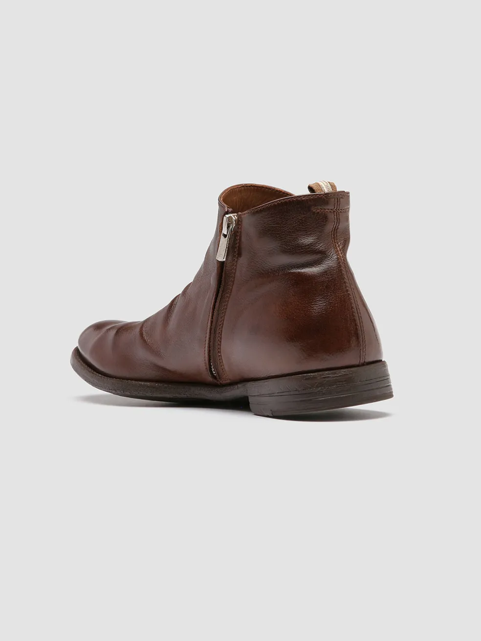 Our comfortable Chelsea boots reveal a versatile and smart-casual style. Crafted by our best craftsmen from premium smooth leather in a warm shade of light brown they feature a strategic side zip fastening rounded almond toe our signature grosgrain heel pull tab and a caoutchouc sole with a stacked heel.