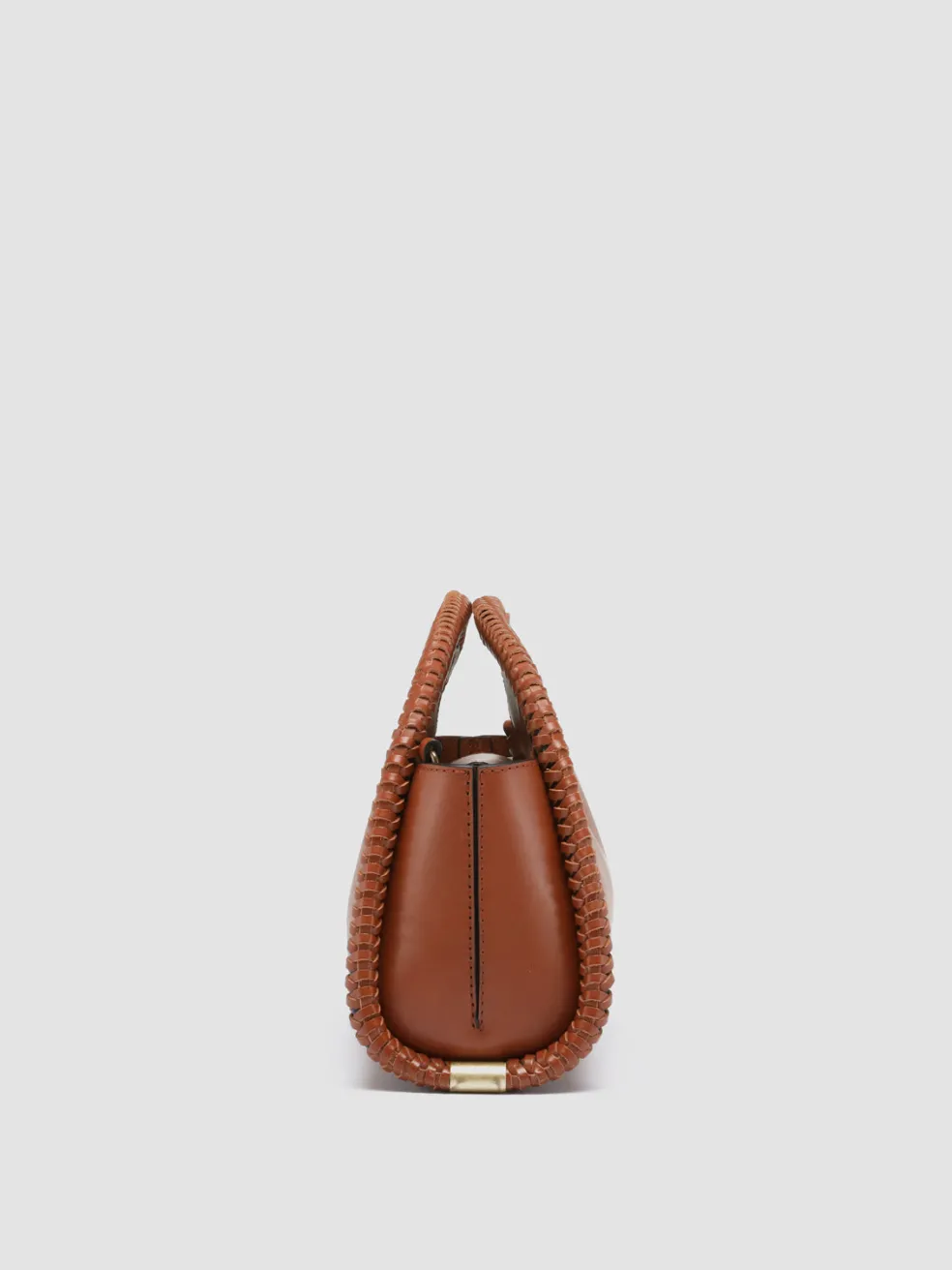 A rounded silhouette highlighted by woven leather profiles with golden details on the sides distinguishes our CABALA clutch bag in precious light brown leather. Featuring an adjustable and detachable shoulder strap, it reveals our lettering logo printed on the back, internal panel with magnetic fastening, suede lining, internal zip pocket and antiqued gold-tone metal hardware.