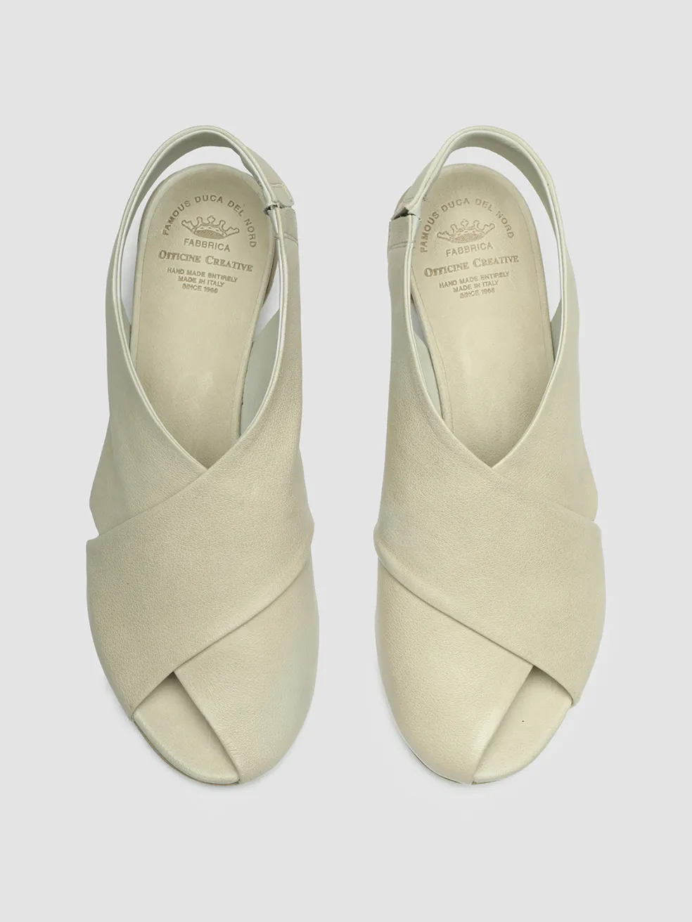 The Helyette 024 slides in white leather are elegantly handcrafted in Italy to provide a blend of sophistication and comfort. These sandals feature a crossover design with broad straps, an inverted heel and a leather sole.