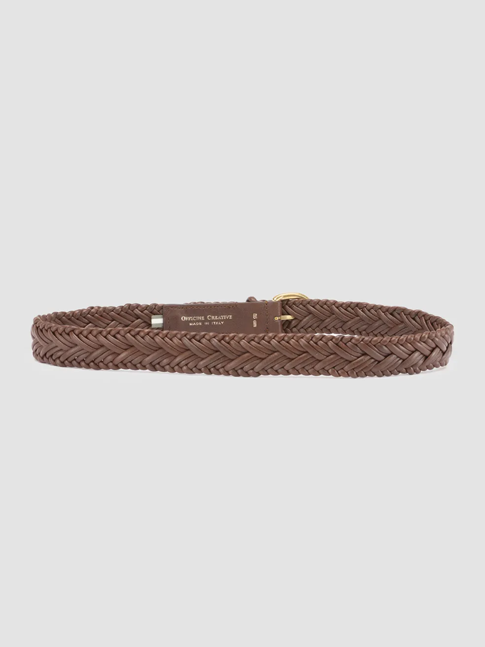 A refined woven design distinguishes our unique OC Strip handcrafted belt. Perfect for casual and formal styles it comes in a brown tone and features a rounded gold-tone metal buckle logo lettering printed on the inside and signature grosgrain loop tab.