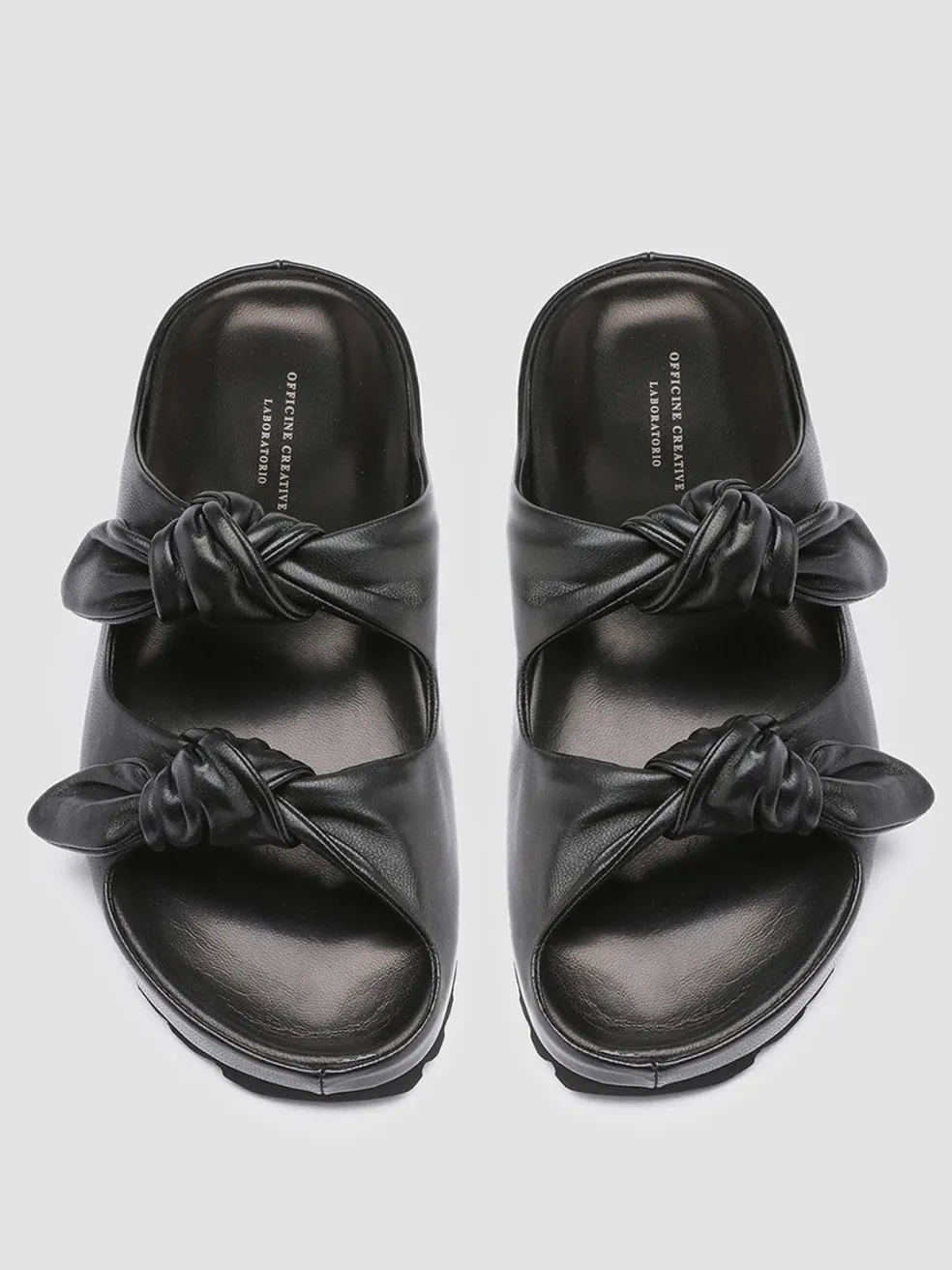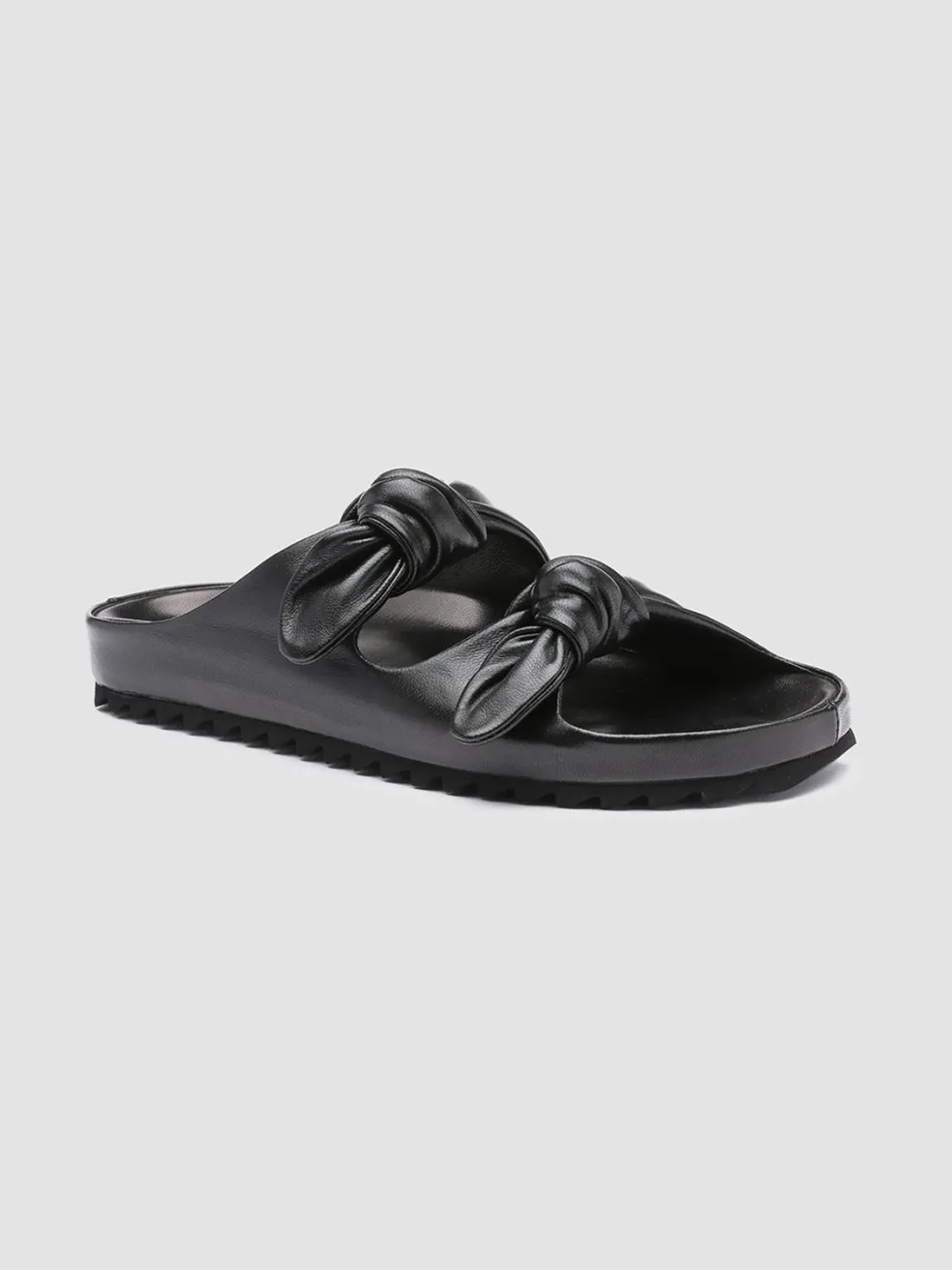 A clean, essential design and an incredible attention to detail characterize our Pelagie sandals. Handcrafted in Italy using the highest-quality vegetable tanned leather, these slides feature a rounded toe with two knot straps and a tread rubber sole, for a comfortable wear.