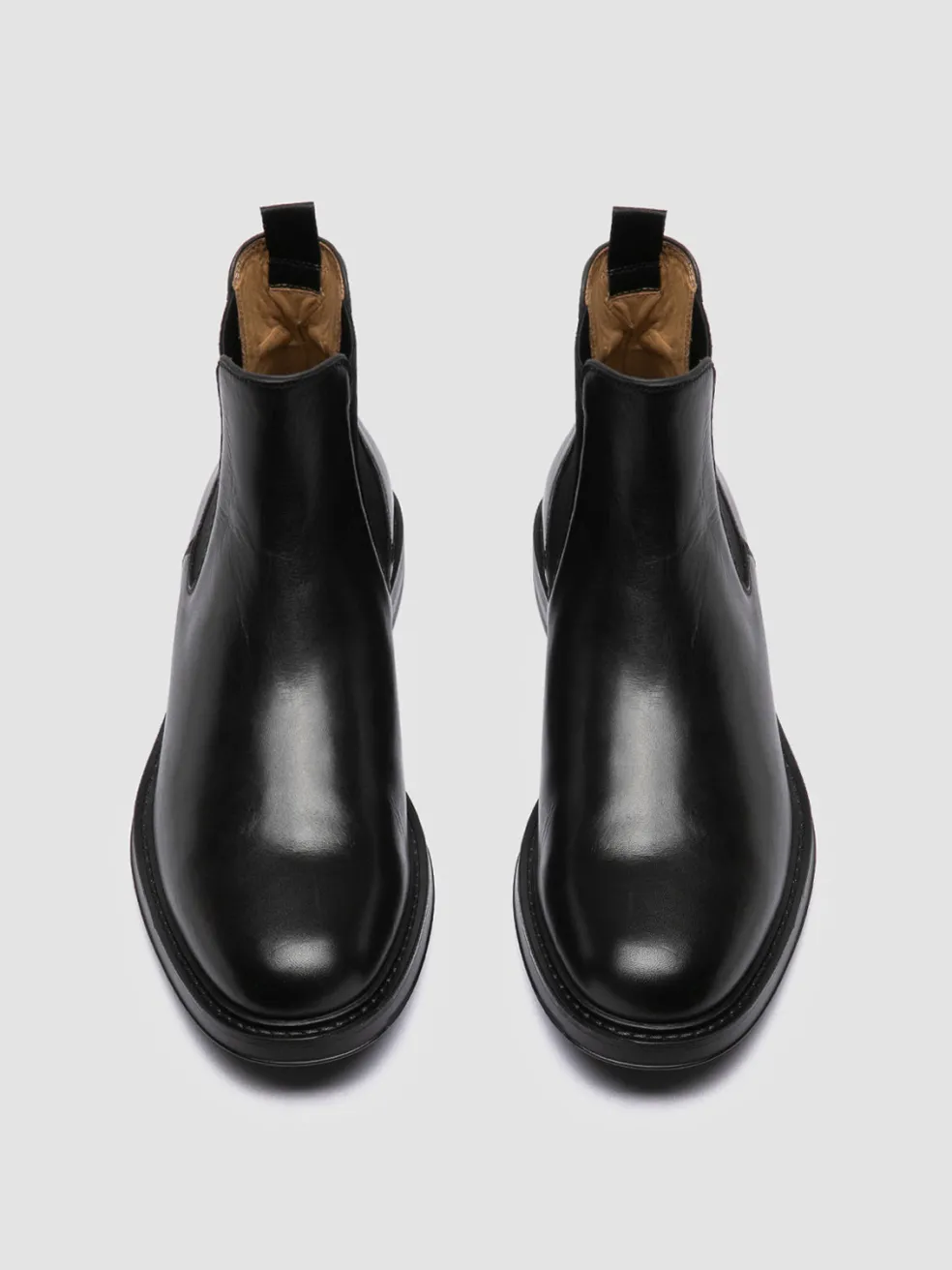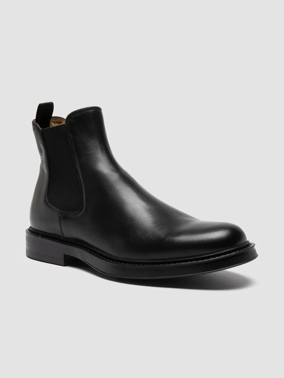 Versatile and timeless our Uniform Chelsea boots are made by our skilled craftsmen from smooth black leather. They feature a classic design with stretch side panels for a comfortable fit rounded almond toe tonal leather heel loop-tab and a durable leather and rubber sole with a grip outsole.
