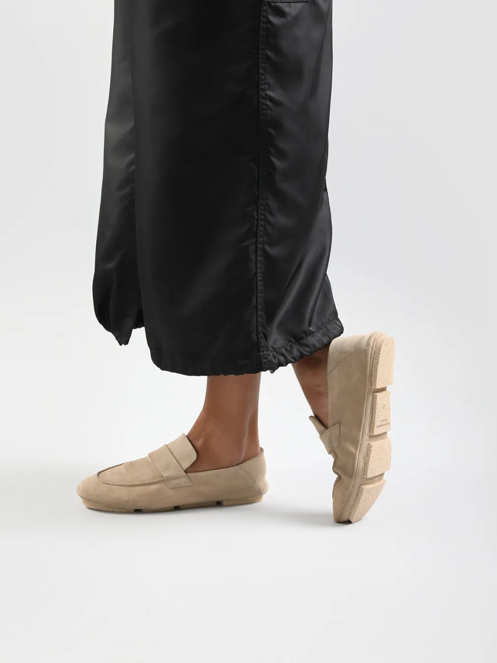 Great for leisure wear, our C-Side loafers can also be worn as slides thanks to the foldable back panel. They are handcrafted from supple beige suede and feature an almond toe, classic front strap and a thin block rubber sole.
