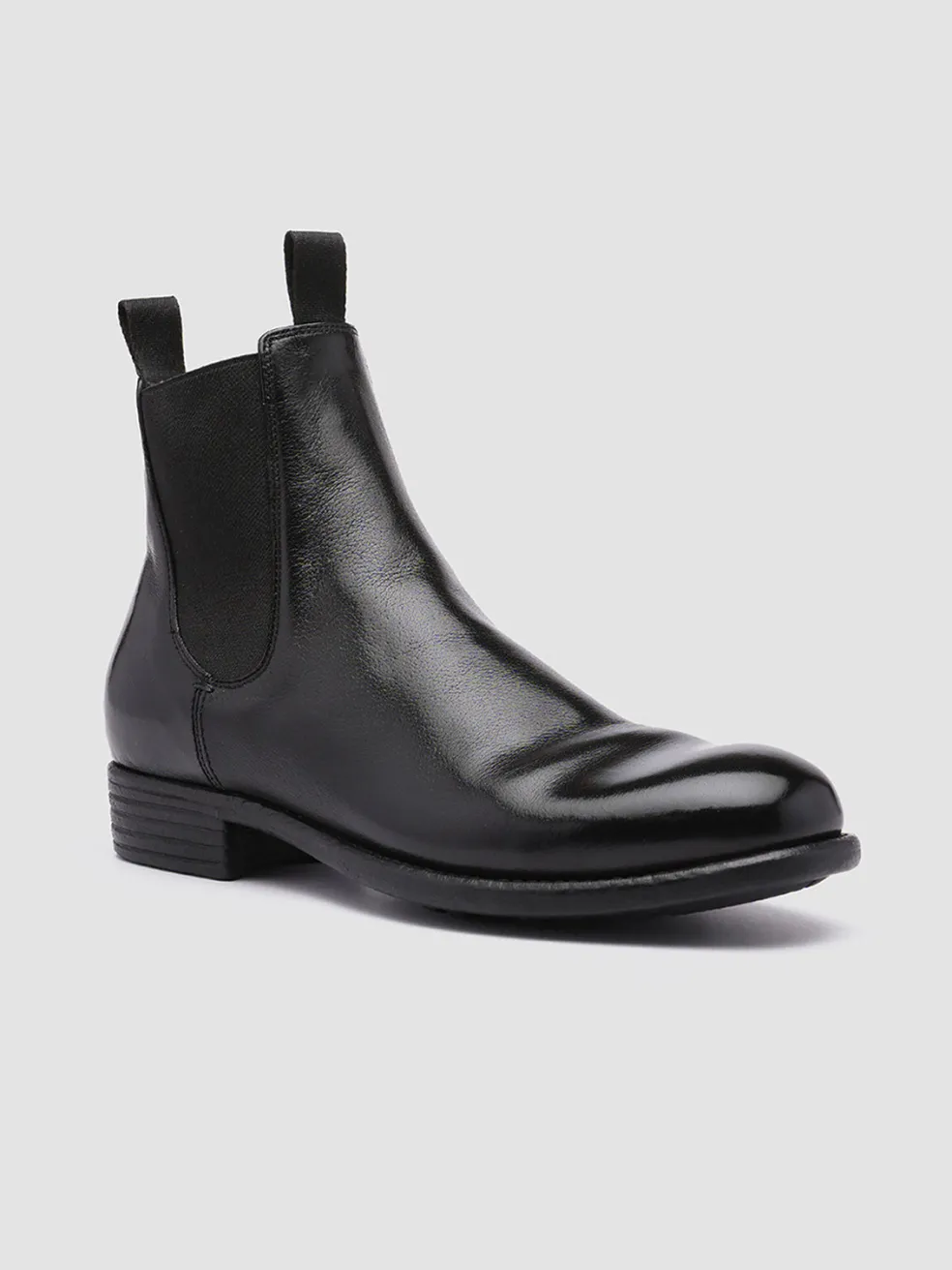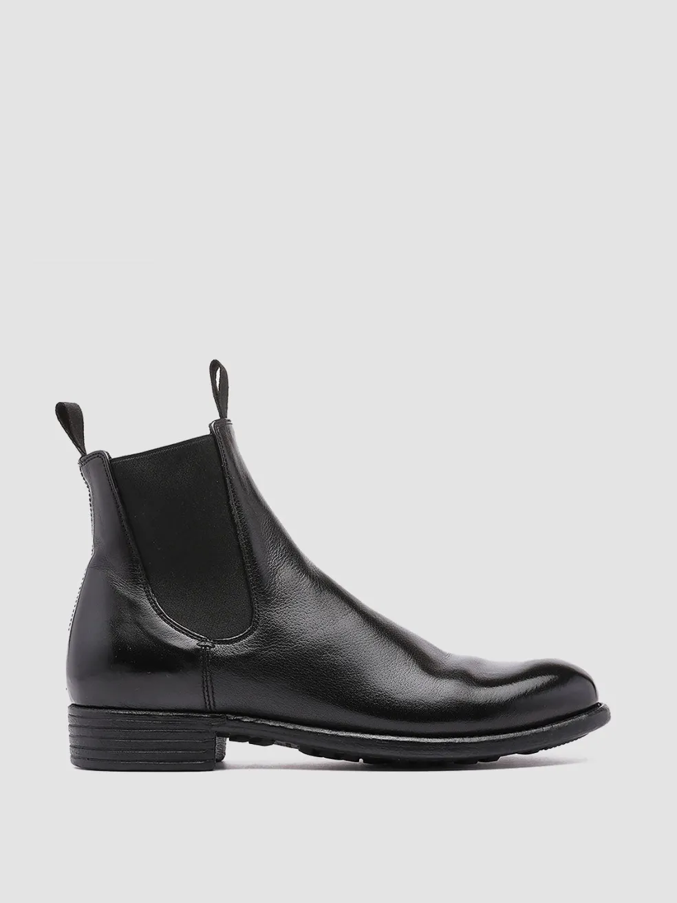 Calixte Chelsea boots perfectly combine comfort and contemporary design. Handcrafted from black fine leather they have elasticated side accents for a perfect fit two original black grosgrain pull tabs a rounded almond toe and a durable caoutchouc sole with a low stacked heel.