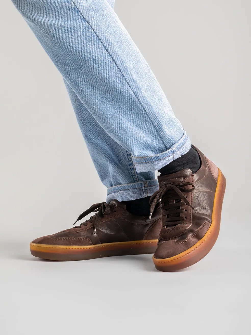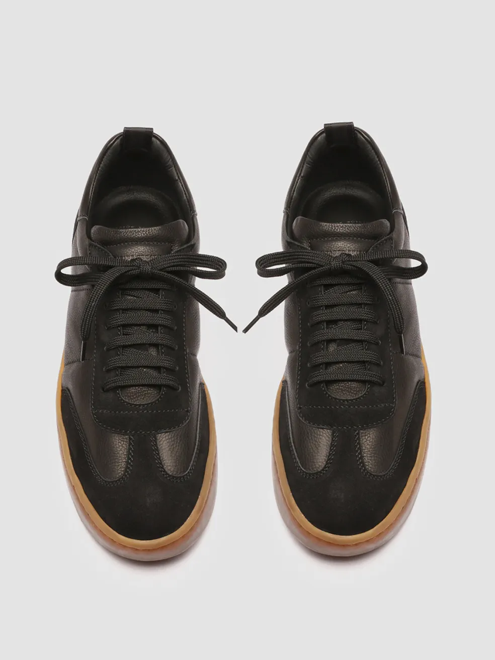 Versatile and with a comfy silhouette our handcrafted Kombined sneakers reveal a premium black grained leather upper with suede panels and a flexible natural latex sole. Our lettering logo embossed at the tongue and heel patch makes this style unmistakable.