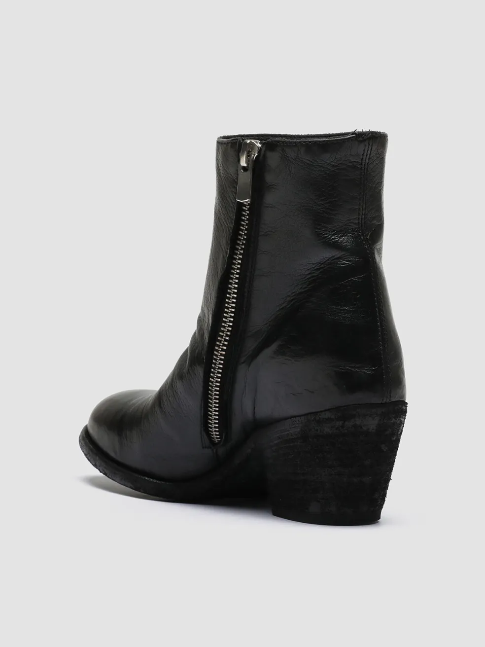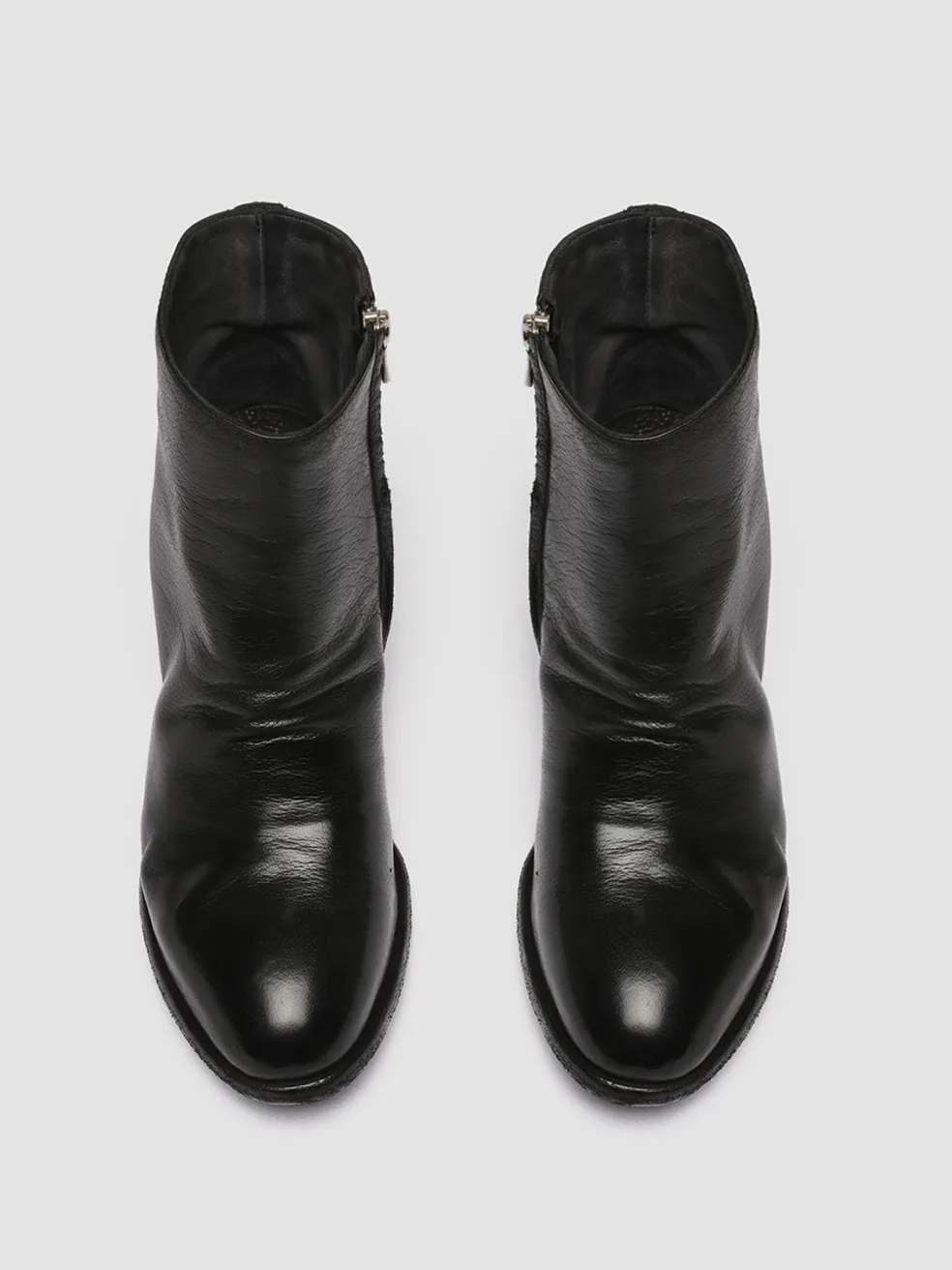 Handcrafted from supple black leather, our versatile Sherry ankle boots feature an almond toe silhouette and a Cuban-style stacked midi heel. They reveal a comfortable side zip fastening and a leather sole with rubber bottom.