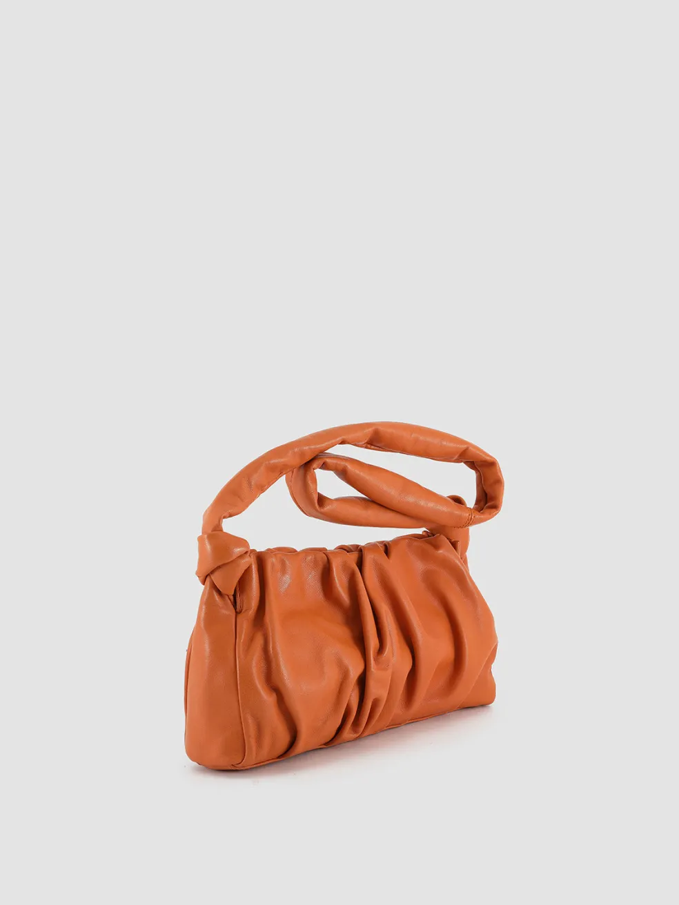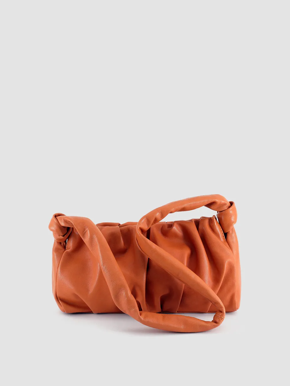 The Bolina 21 shoulder bag features supple orange leather that gracefully gathers into lush drapes along the minimal silhouette. The shoulder strap, knotted at each end, adds a unique and relaxed appeal to the bag’s distinctive look.