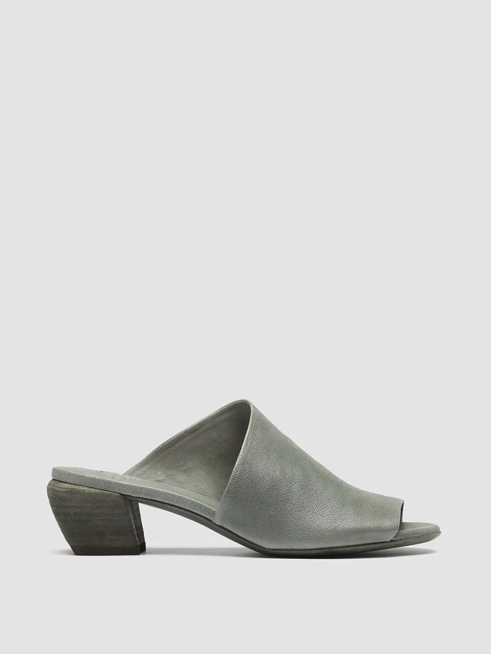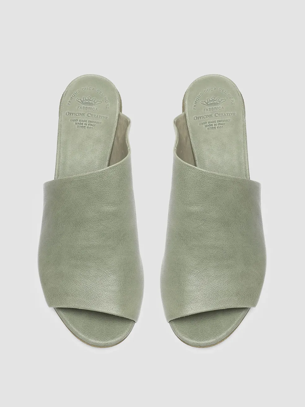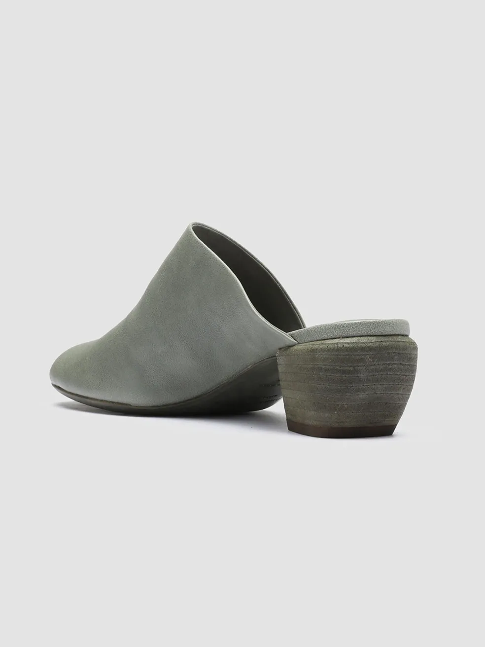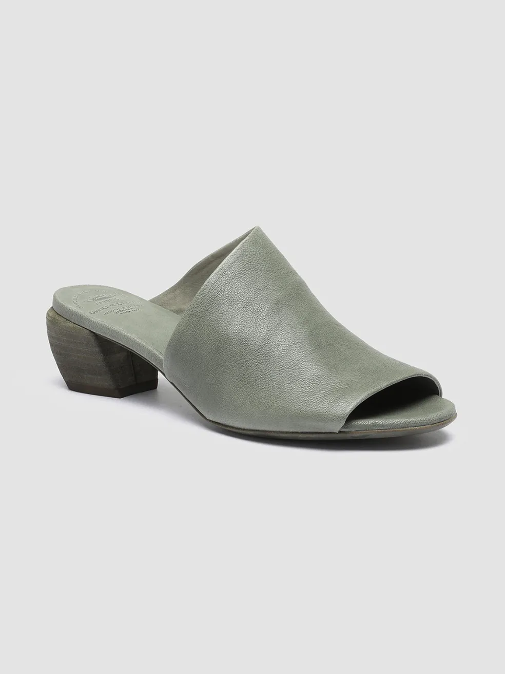 A simple yet sophisticated design distinguishes our handcrafted Helyette mules. Comfortable thanks to the midi slanted stacked block heel they have a wide wraparound asymmetrical band in green smooth leather rounded toe leather lining insole and sole.