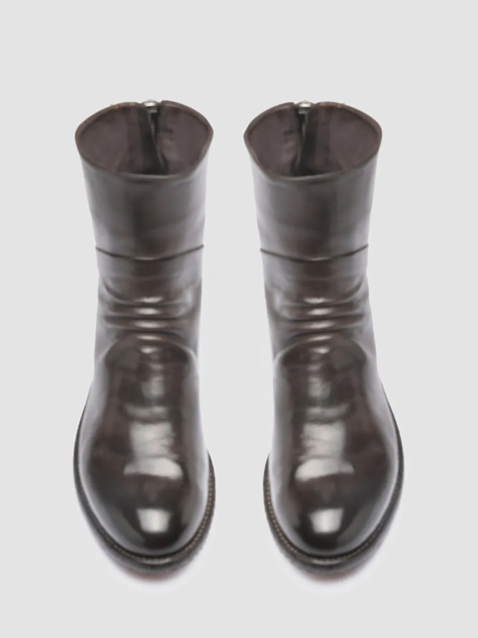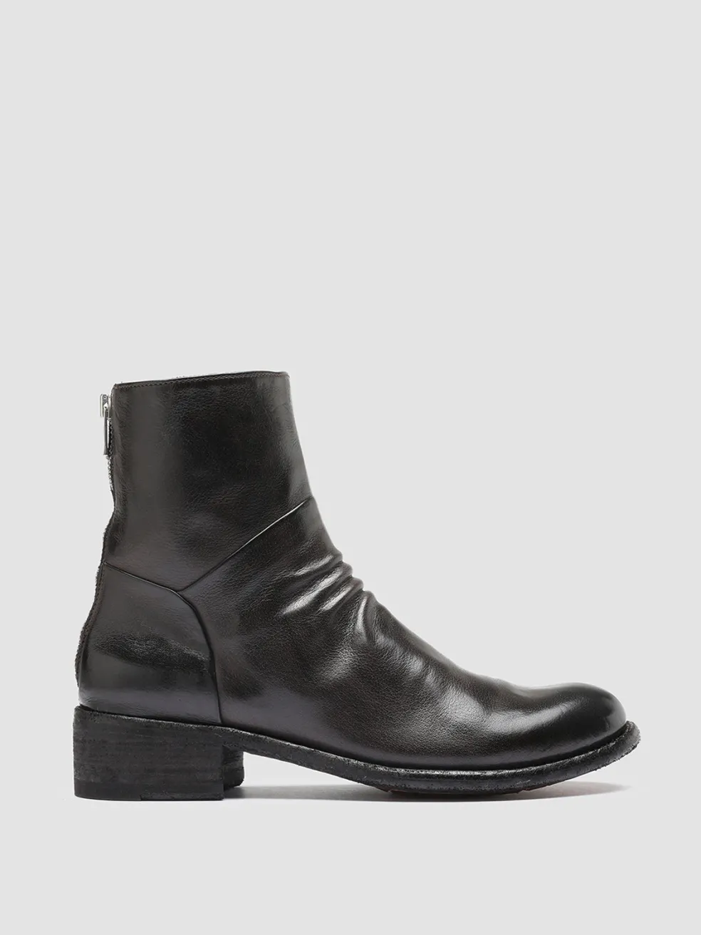 Our Lison ankle boots are great for a contemporary effortless style. Crafted with care by hand from fine dark brown brushed leather they feature a comfortable silhouette with rounded toe soft front pleats back zip fastening and leather sole with a low stacked heel and commando rubber pads.