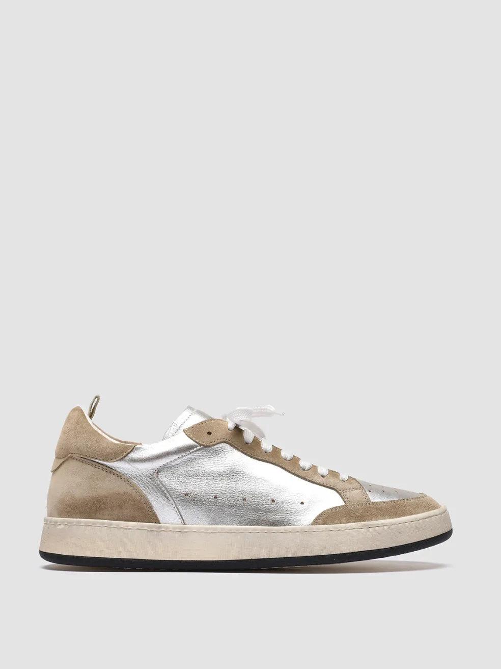Combining a sporty silhouette with bold shades, our Magic 001 sneakers are the perfect way to make a style statement. Beige suede and silver leather uppers rest on rubber soles that guarantee flexibility and comfort.