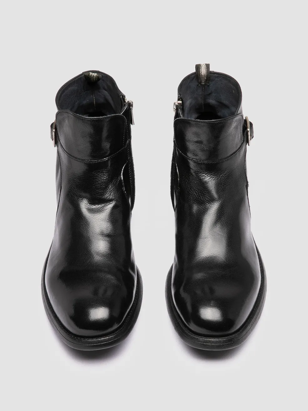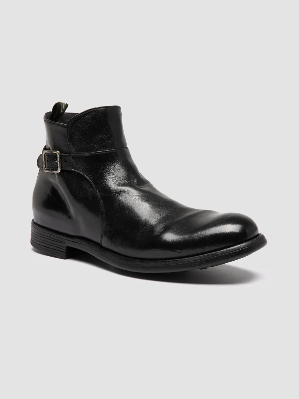 The Chronicle 068 boots are made in Italy from exquisite black leather, featuring a sleek silhouette with a side buckle, a functional zippered closure, a natural rubber sole for durability and the signature grosgrain heel pull tab.