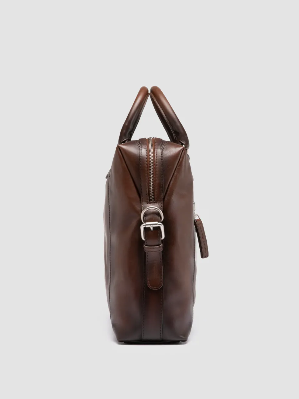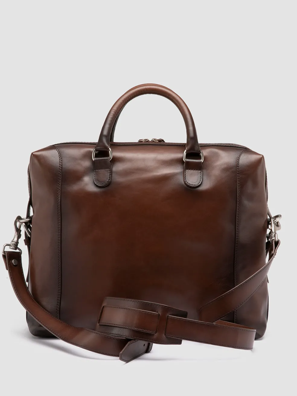 An icon of professional elegance, the Jules 003 briefcase is handmade in Italy from supple brown leather. Blending luxury and function, it features a spacious interior, zippered security, top handles and detachable strap.