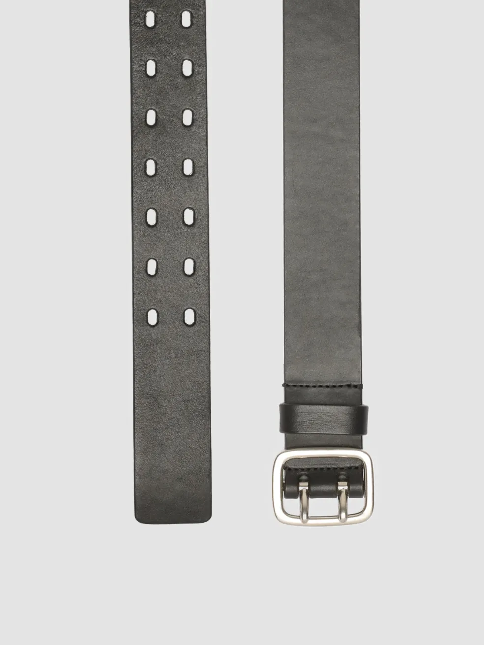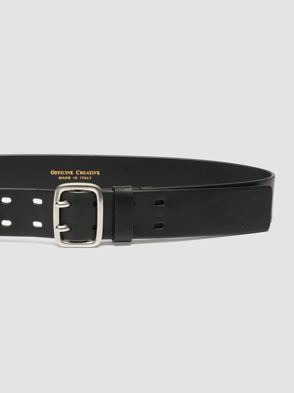 Our OC Strip belt is handcrafted from premium black smooth leather and is marked by a rounded rectangular silver-tone metal buckle, double rows of holes and gold-tone lettering logo printed inside. A precious accessory to complete your favorite looks of every season.