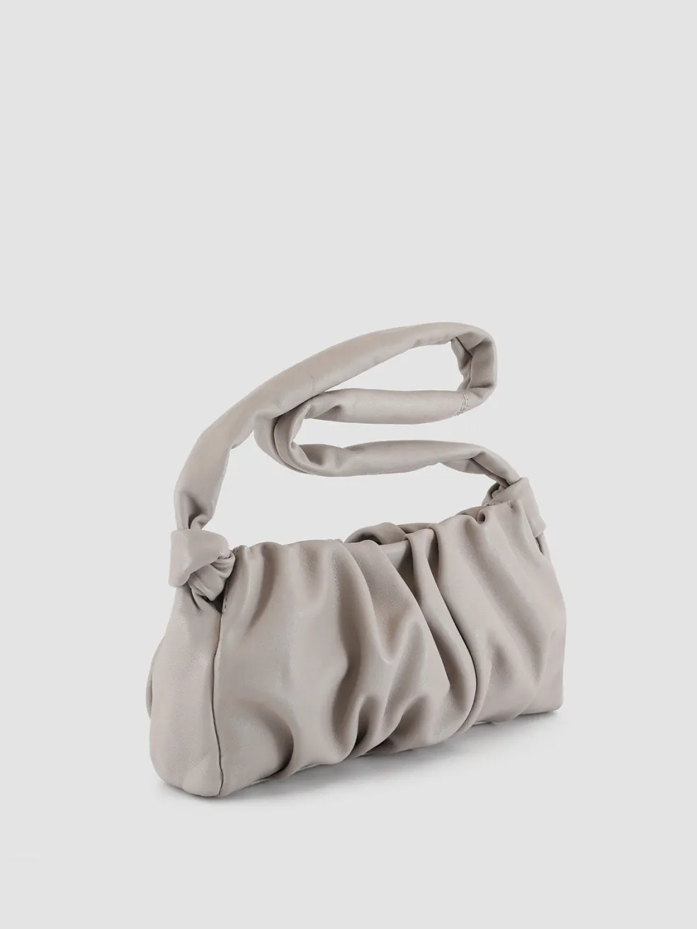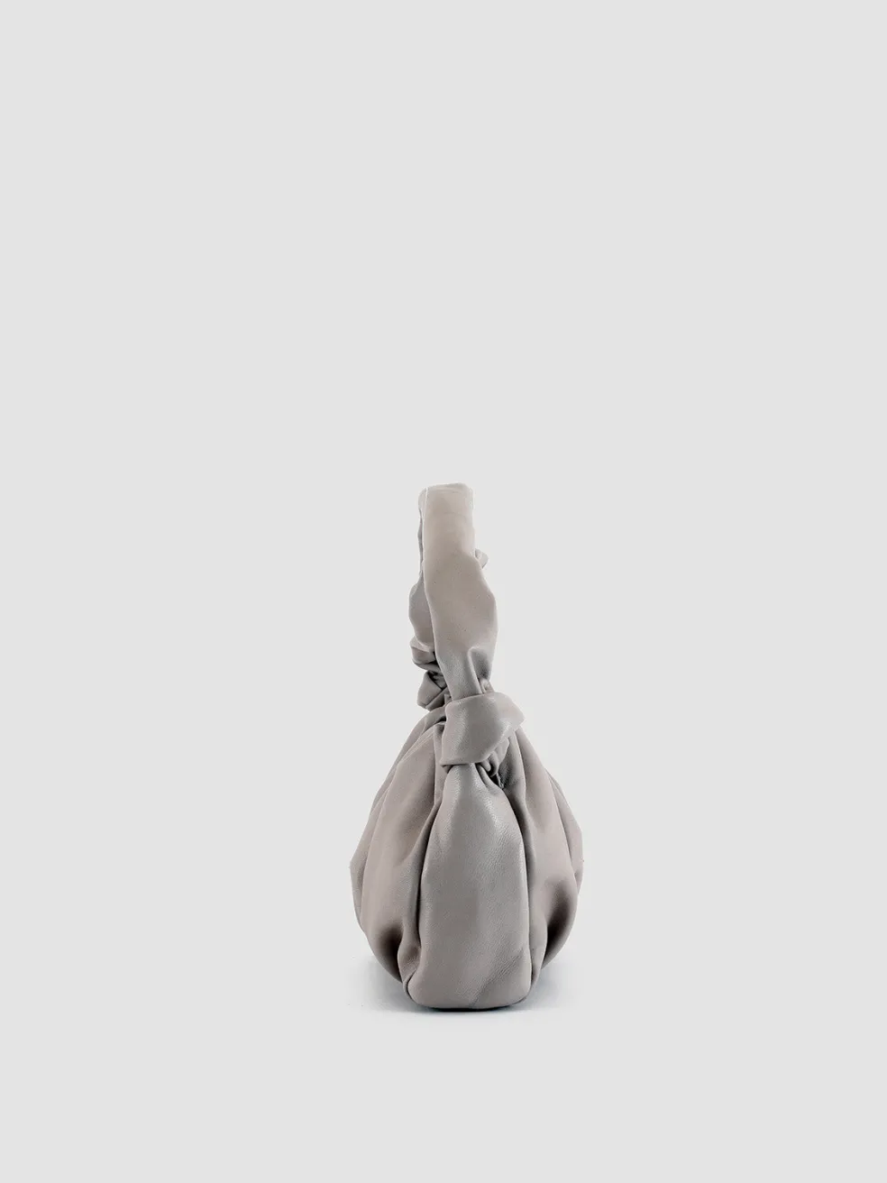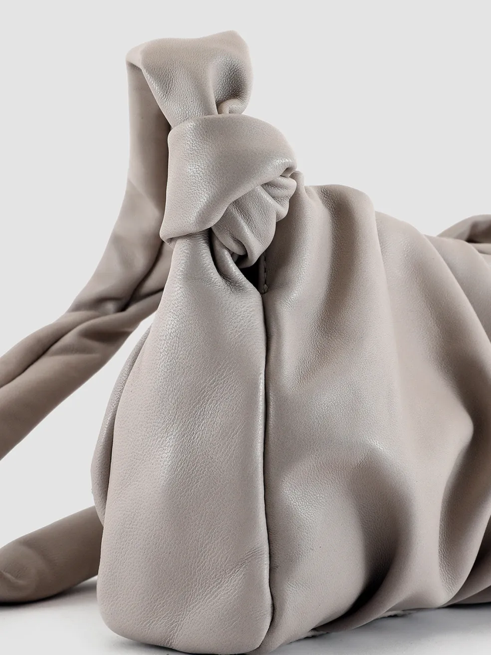 The Bolina 21 shoulder bag features supple grey leather that gracefully gathers into lush drapes along the minimal silhouette. The shoulder strap, knotted at each end, adds a unique and relaxed appeal to the bag’s distinctive look.