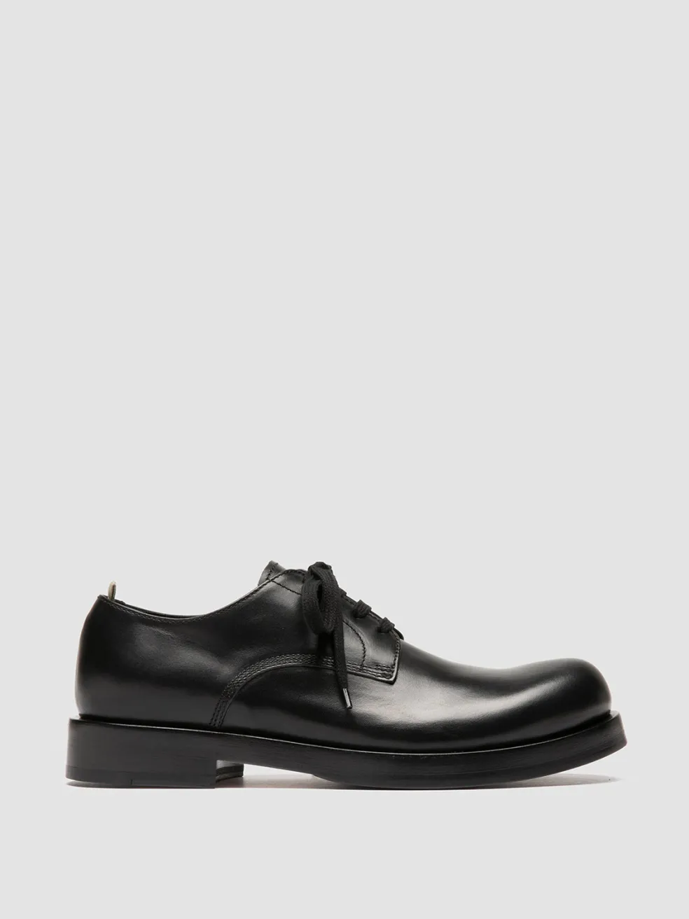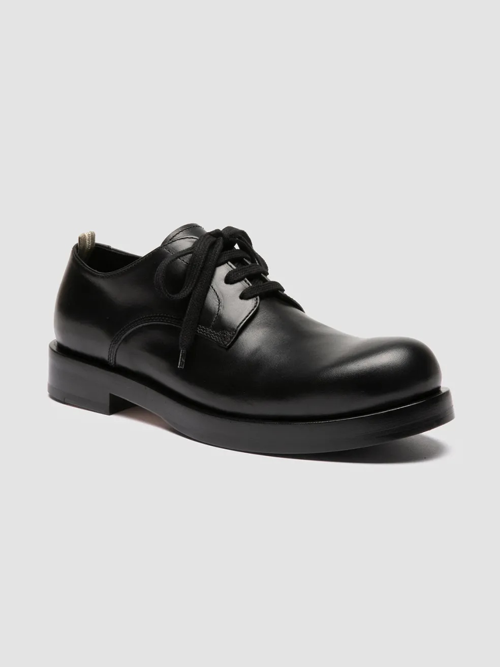 Emanating a contemporary yet gothic charm, the Bulla 001 derby shoes are expertly handcrafted in Italy from premium black leather, featuring a durable rubber-injected sole for enduring elegance and robust functionality.