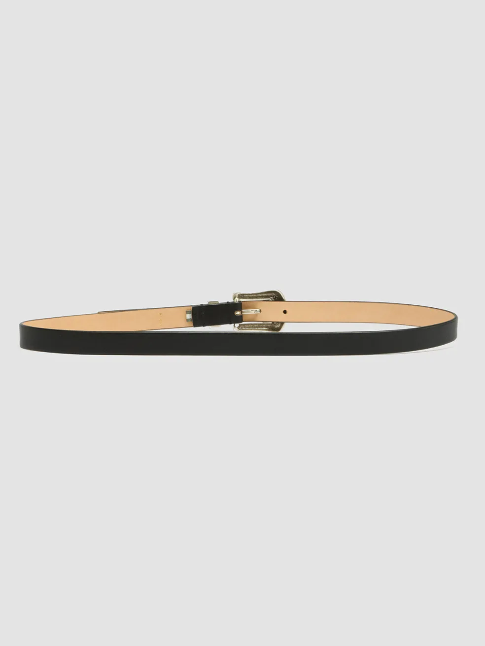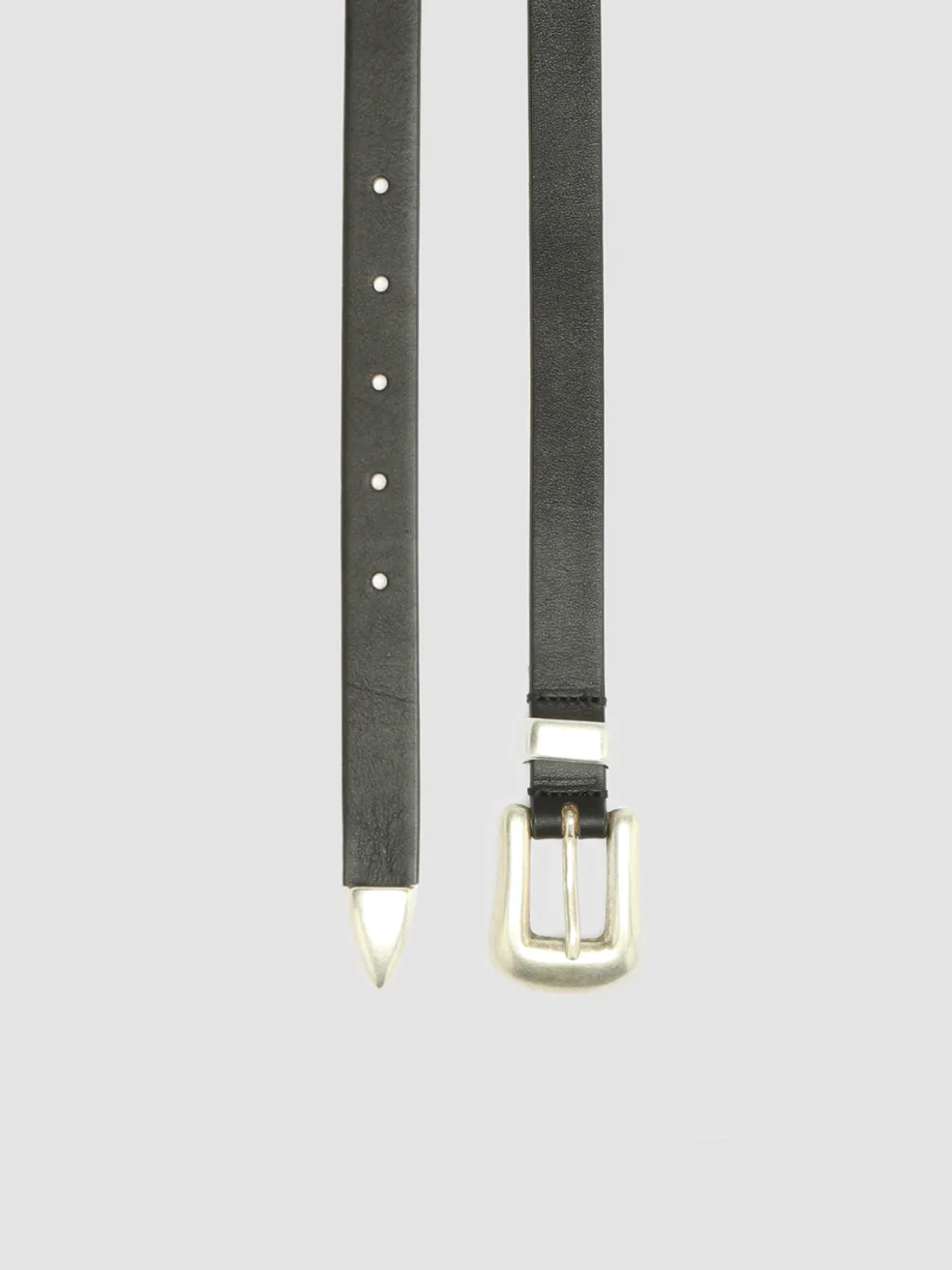 Our OC Strip slim belt in premium black leather stands out with its silver-tone metal bold buckle and pointed tab. Made with care by hand by our artisans, it features lettering logo imprinted on the inside, and is a great accessory to complete your looks with a stylish twist.