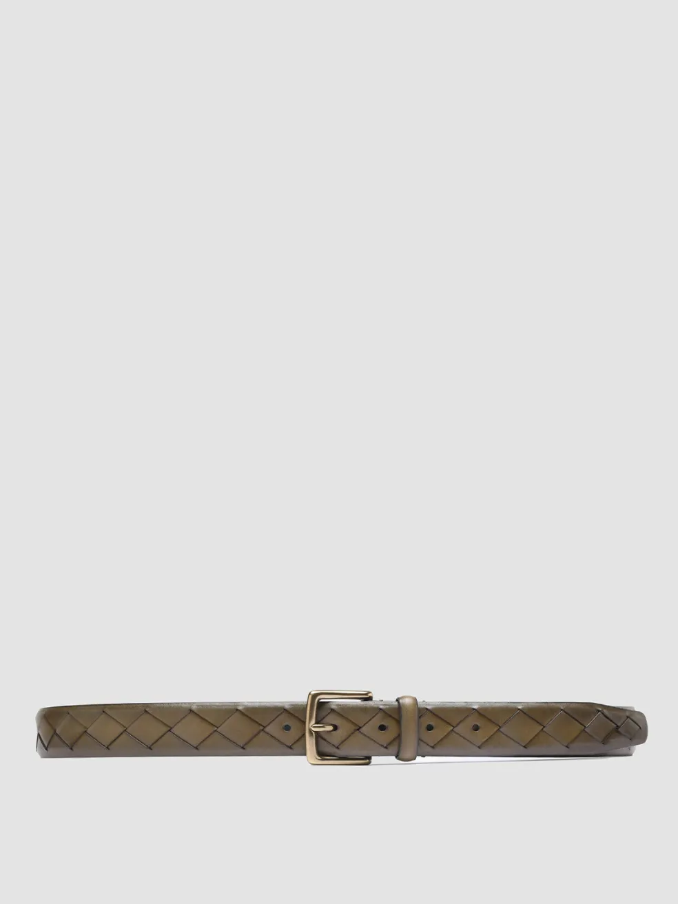 Distinguished by a refined design in woven leather our OC Strip belt is expertly handcrafted from fine airbrushed leather in shades of green. It has a classic square buckle in gold-tone metal logo lettering printed on the inside and our signature grosgrain loop tab.