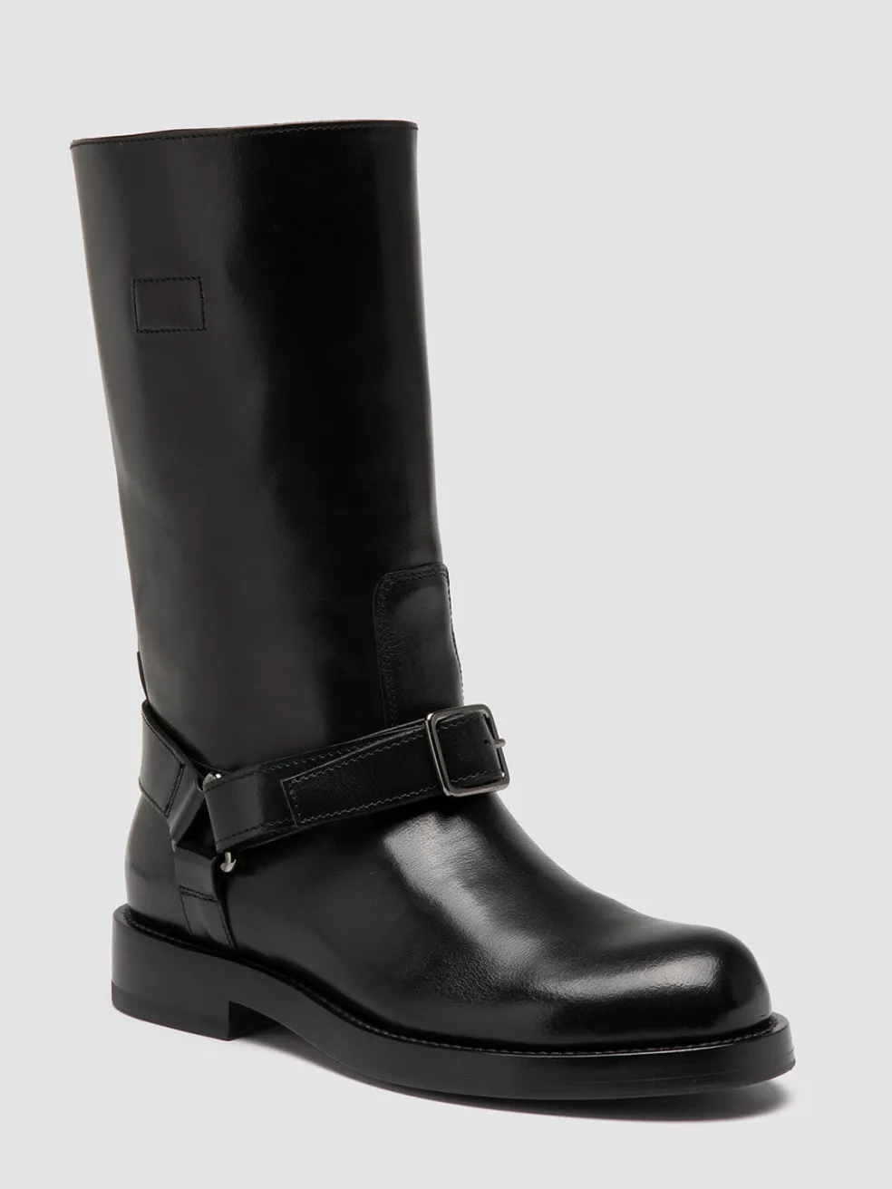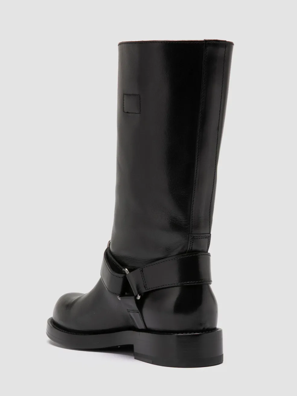 Meticulously handcrafted in Italy from genuine leather, the Beryl 001 pull-on boots in black exude sturdy sophistication, featuring a riding-style monolithic silhouette and double-injection rubber sole with a low-stacked heel.