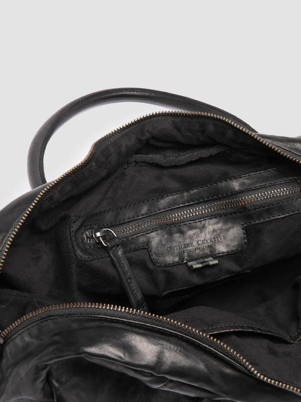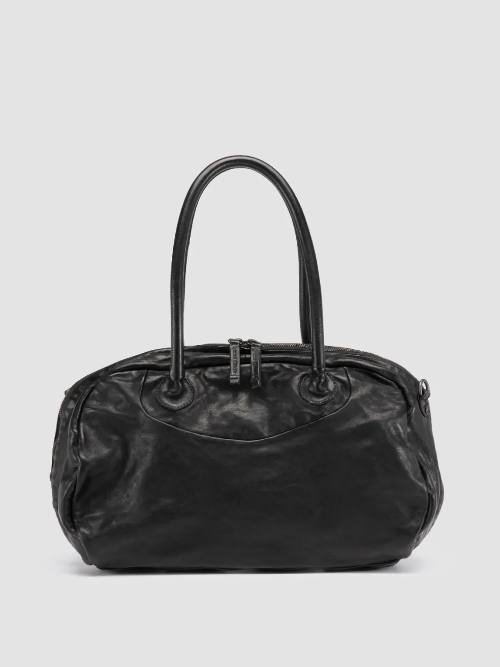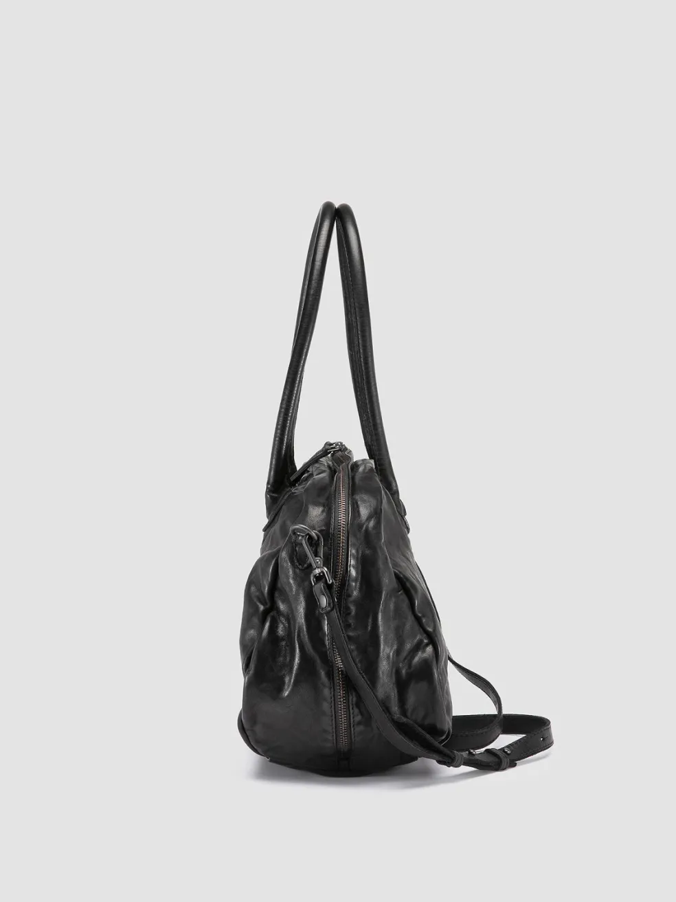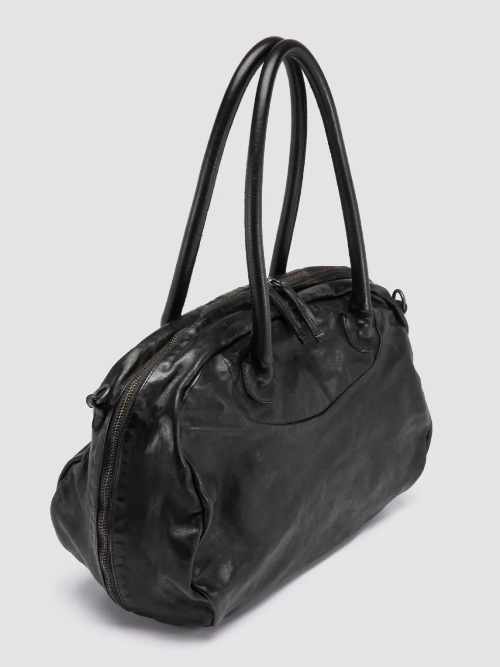 Handcrafted in Italy from premium black leather for a sleek look, the Blower 001 bag is a nod to the classic bowler model. A statement accessory with a spacious interior, featuring two top handles and a detachable shoulder strap.