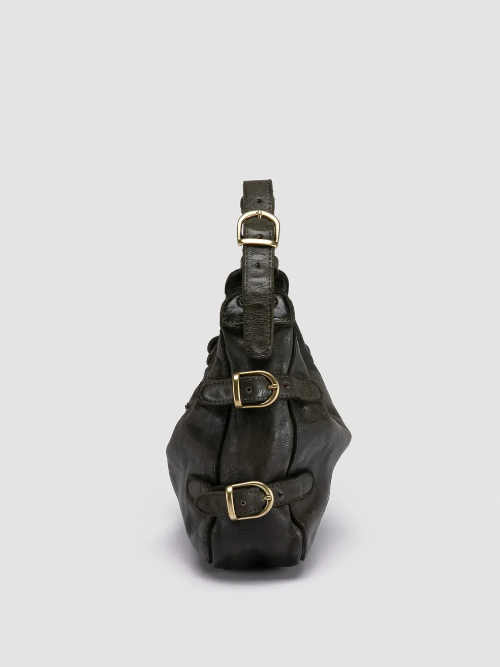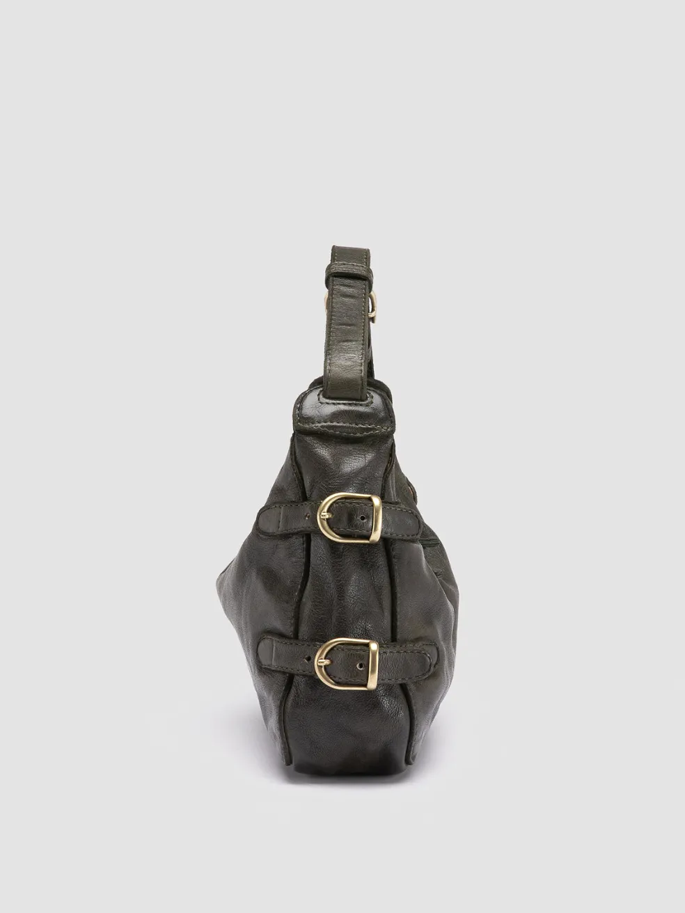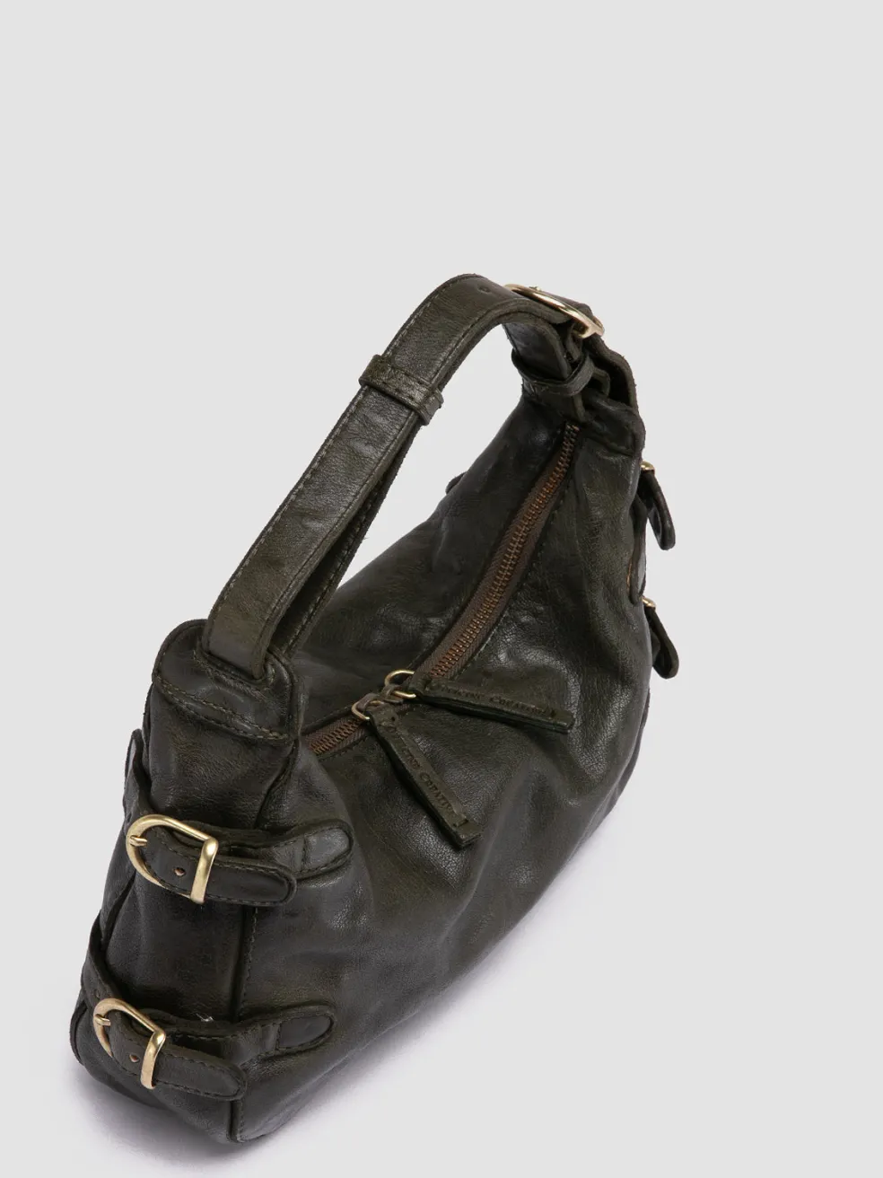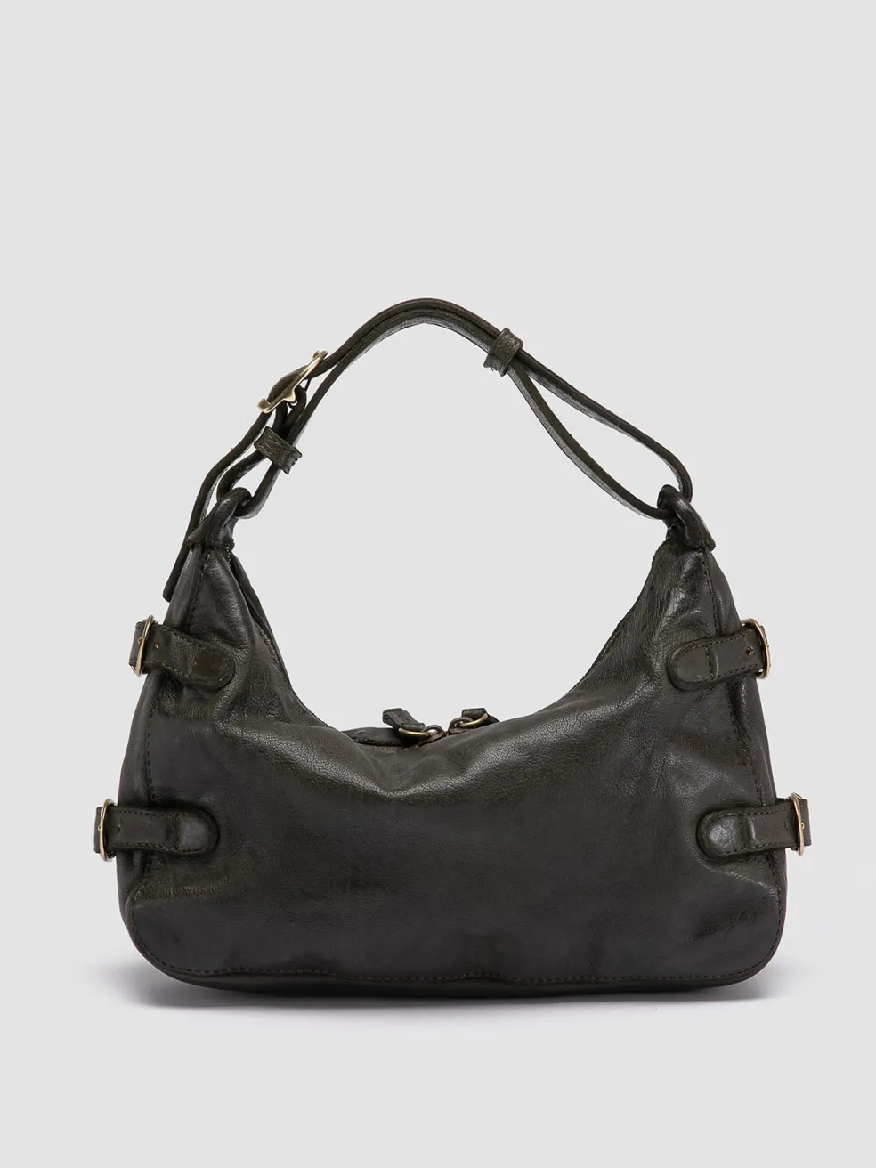 The Julie 009 shoulder bag is a blend of craftsmanship and retro design. Handmade in Italy from lush green leather, this piece is accented with graceful metal buckles, secure zip closure and an internal pocket for your essentials.