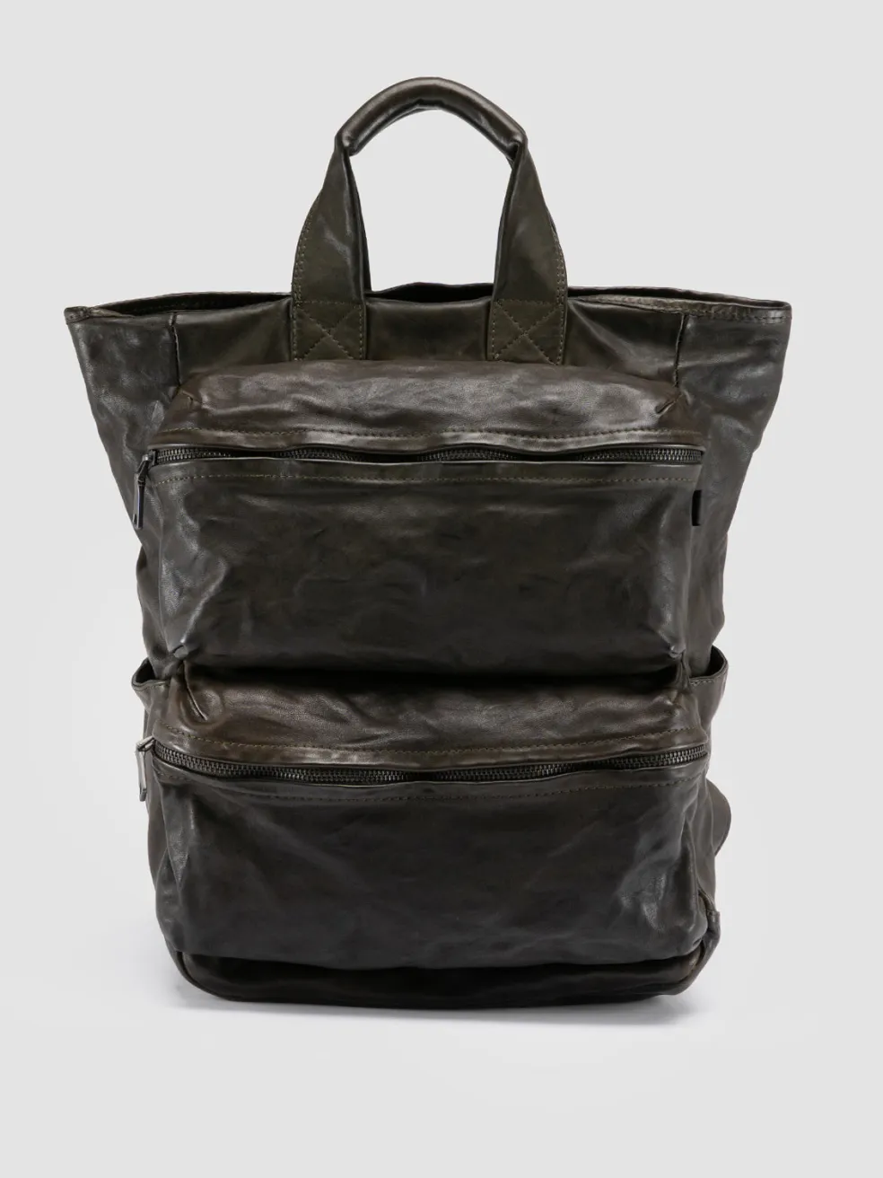 Echoing the practical spirit of military gear, the Recruit 014 backpack is the quintessential ally for the contemporary explorer. Handcrafted in Italy from premium green leather, it’s designed with an ergonomic structure and a padded mesh back panel for increased comfort and improved airflow.