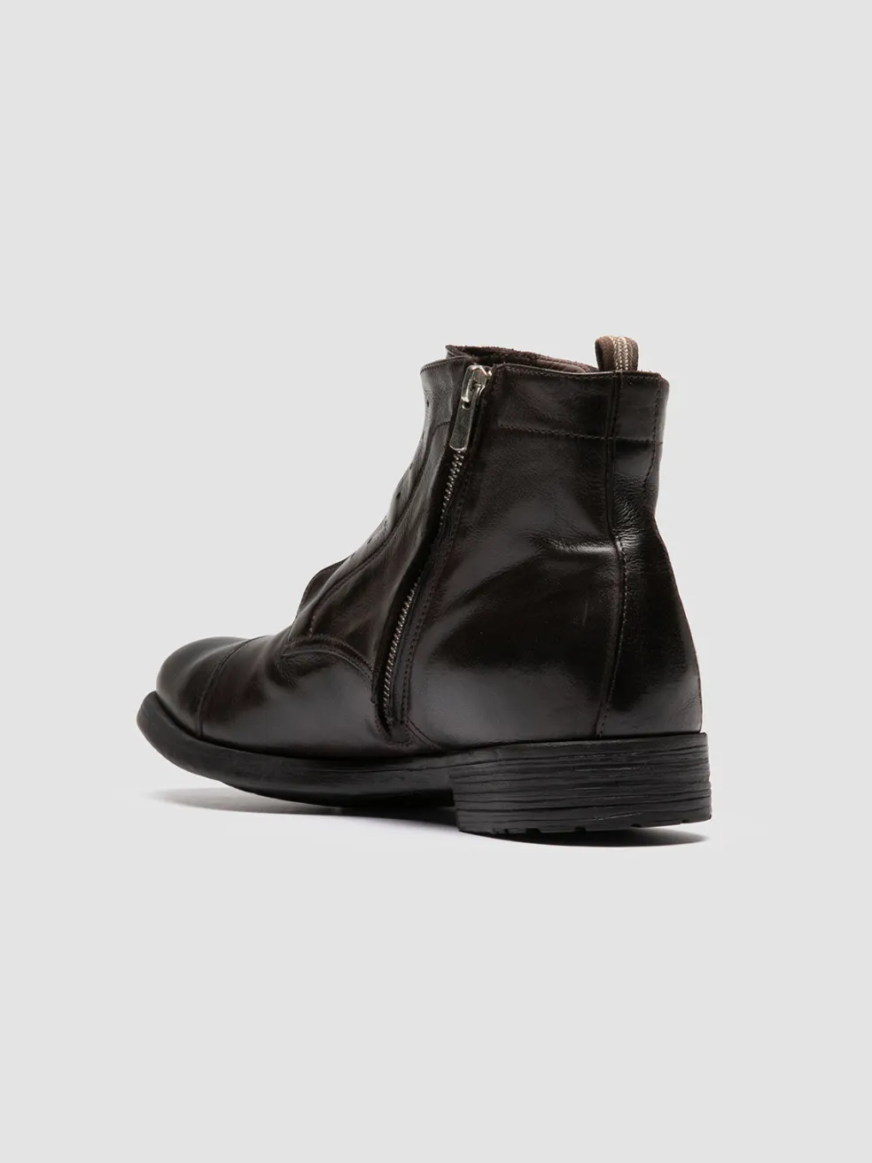 Handcrafted in Italy, the Hive 005 boots showcase a streamlined design in premium brown leather. A distinct feature is the absence of laces, for a sleek look complemented by a silver-tone side zip and a durable rubber sole.