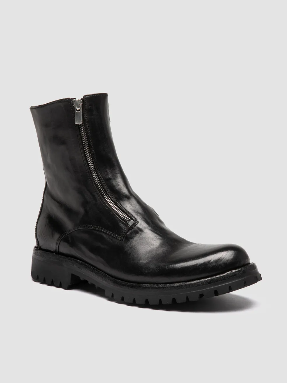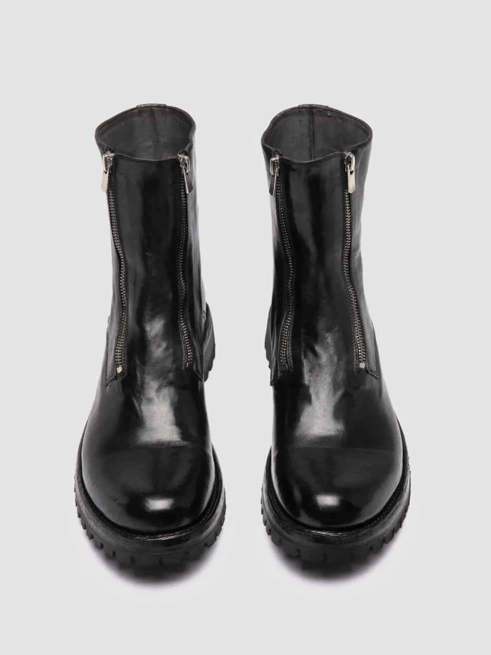 The Ikonic 012 boots stand out with a bold, dual-zip entry blending strong character and luxurious functionality. Handcrafted in Italy from premium black leather, the daring silhouette is set on a sturdy lug sole.