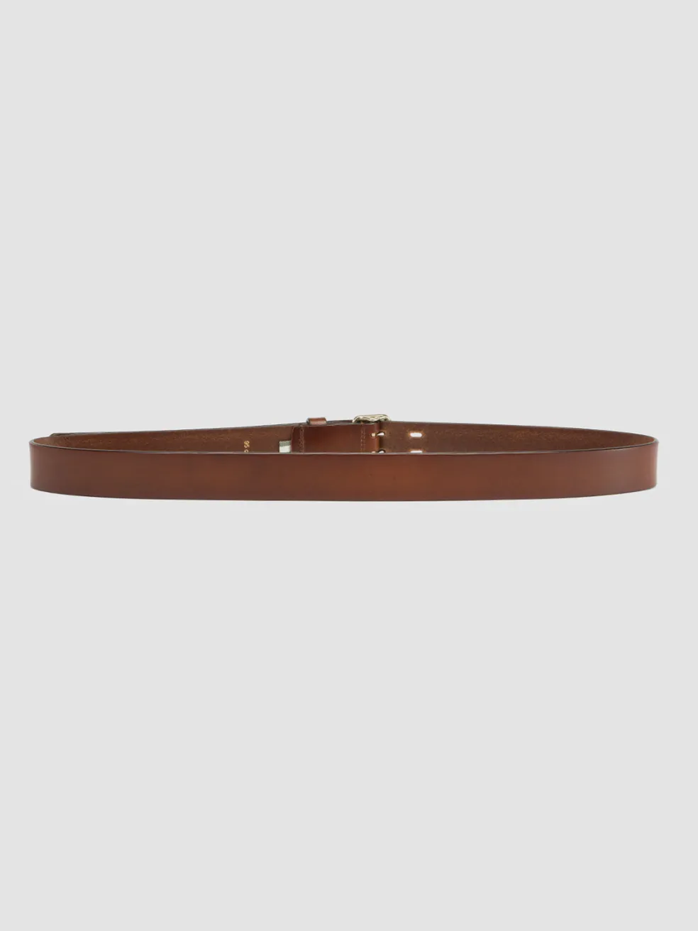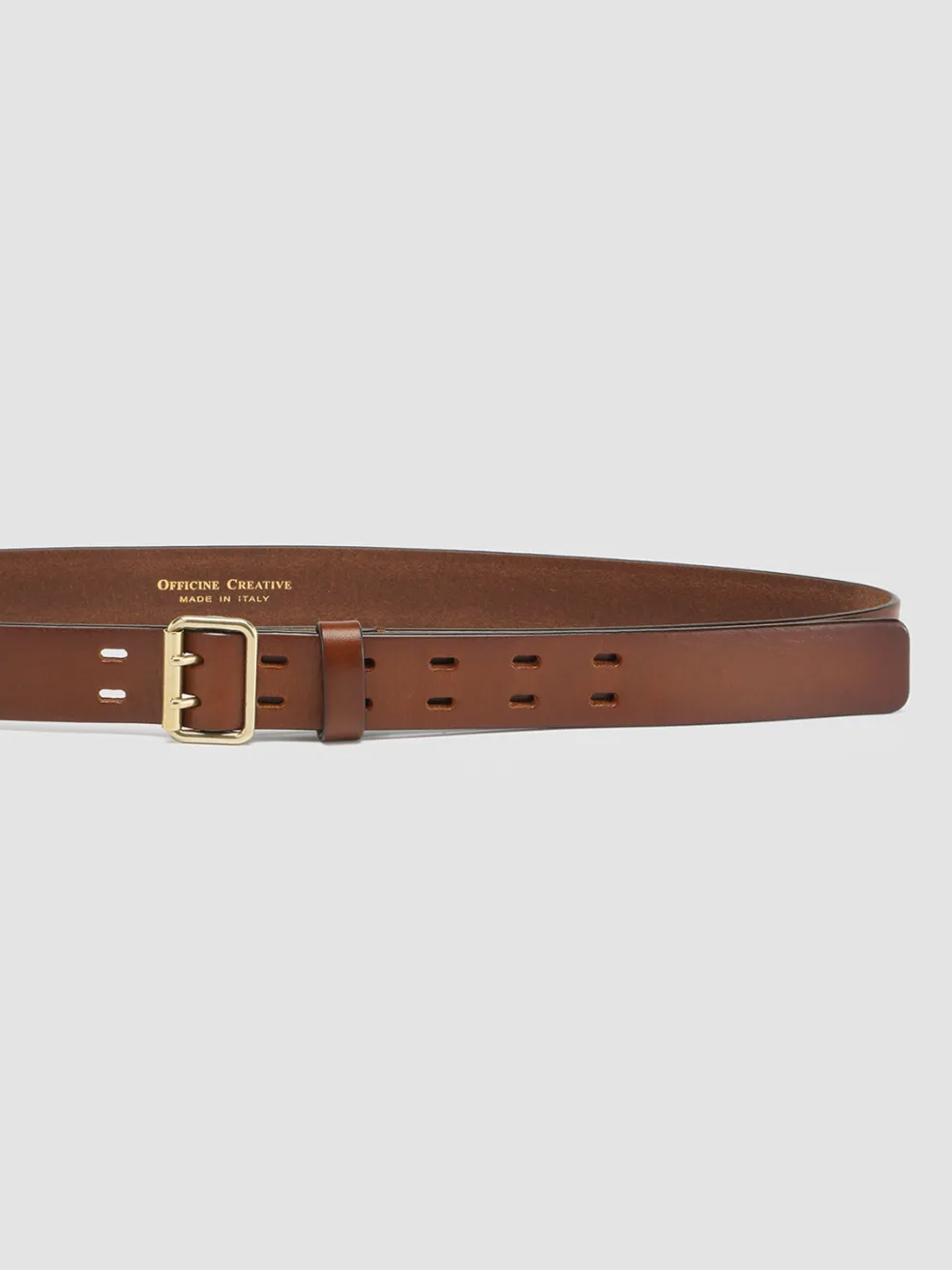 Great for pairing with contemporary and sophisticated looks, our OC Strip belt is handcrafted from smooth light brown leather. It reveals a rounded rectangular gold-tone metal buckle, double rows of holes and our golden lettering logo printed inside.