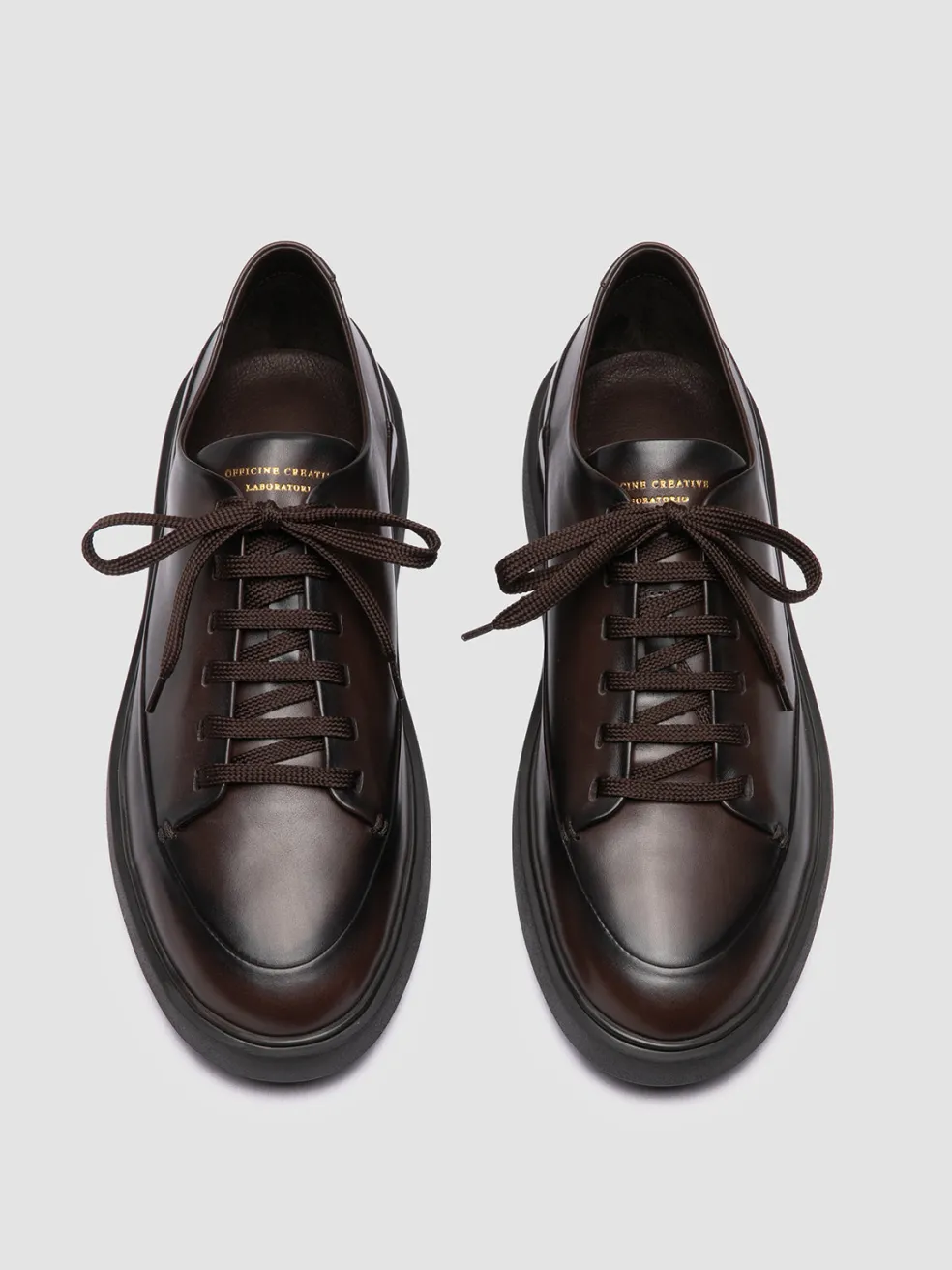 The Release 001 sneakers merge minimal, monolithic design with luxurious craftsmanship. Handmade in Italy, the premium brown leather shapes a clean low-top silhouette set on a sleek EVA sole, enhancing the urban appeal.
