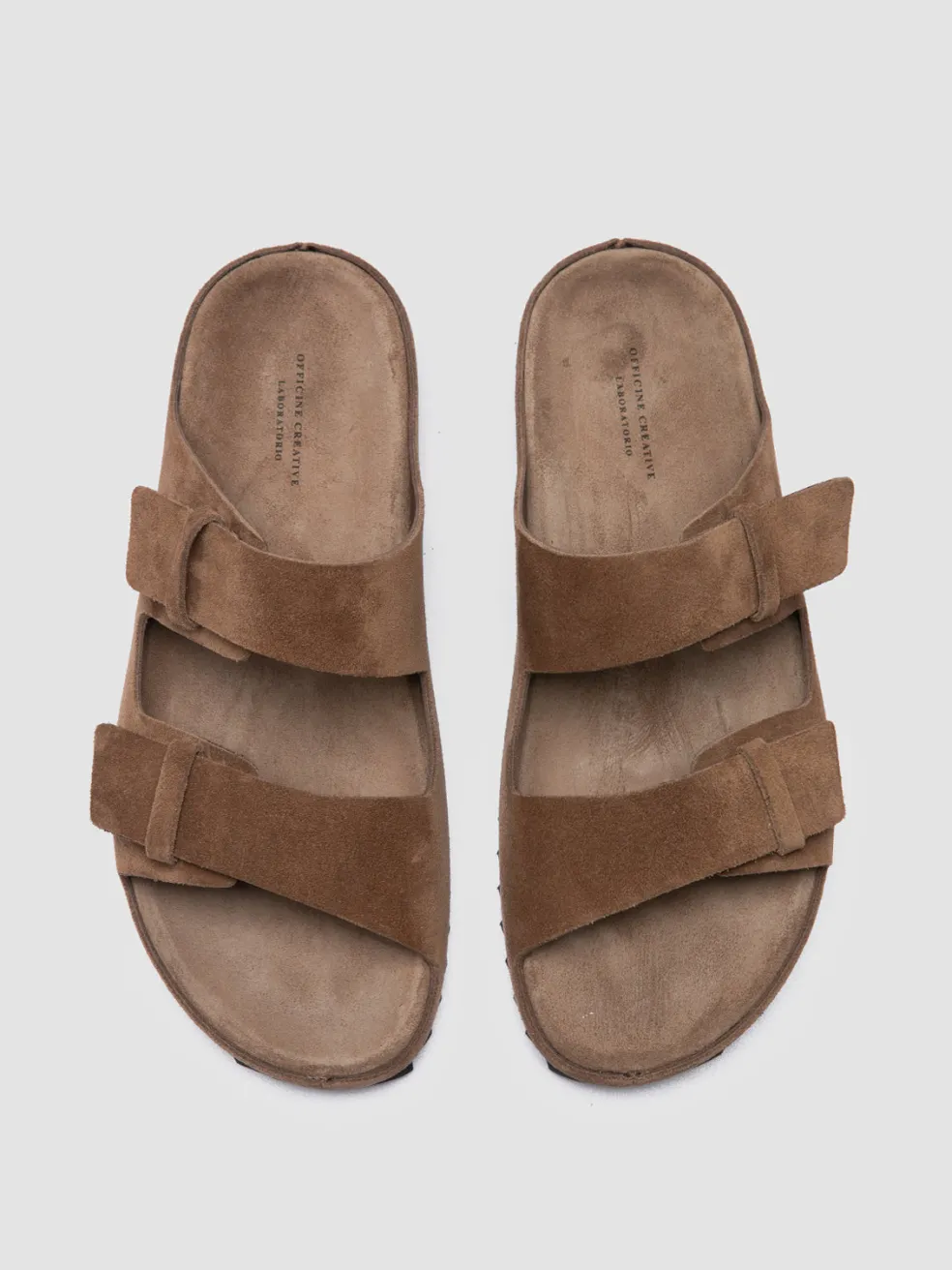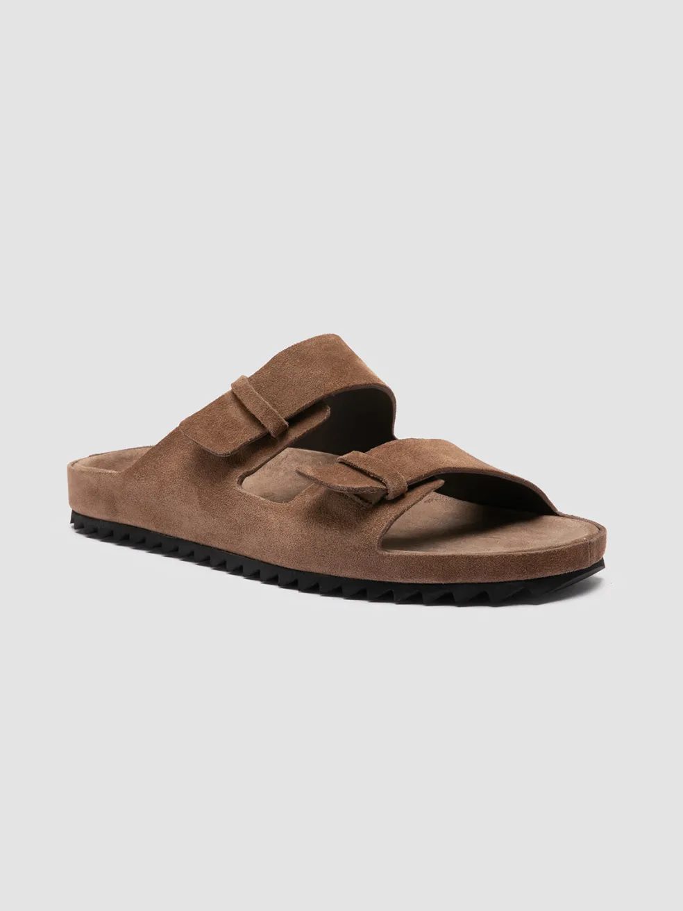 Revealing an essential and seamless design, our Agorà sandals represent the perfect mix of refined comfort and contemporary style. Handcrafted in Italy using soft premium suede, these slides feature a rounded toe, two straps with loops, a molded insole and a rubber tread outsole.