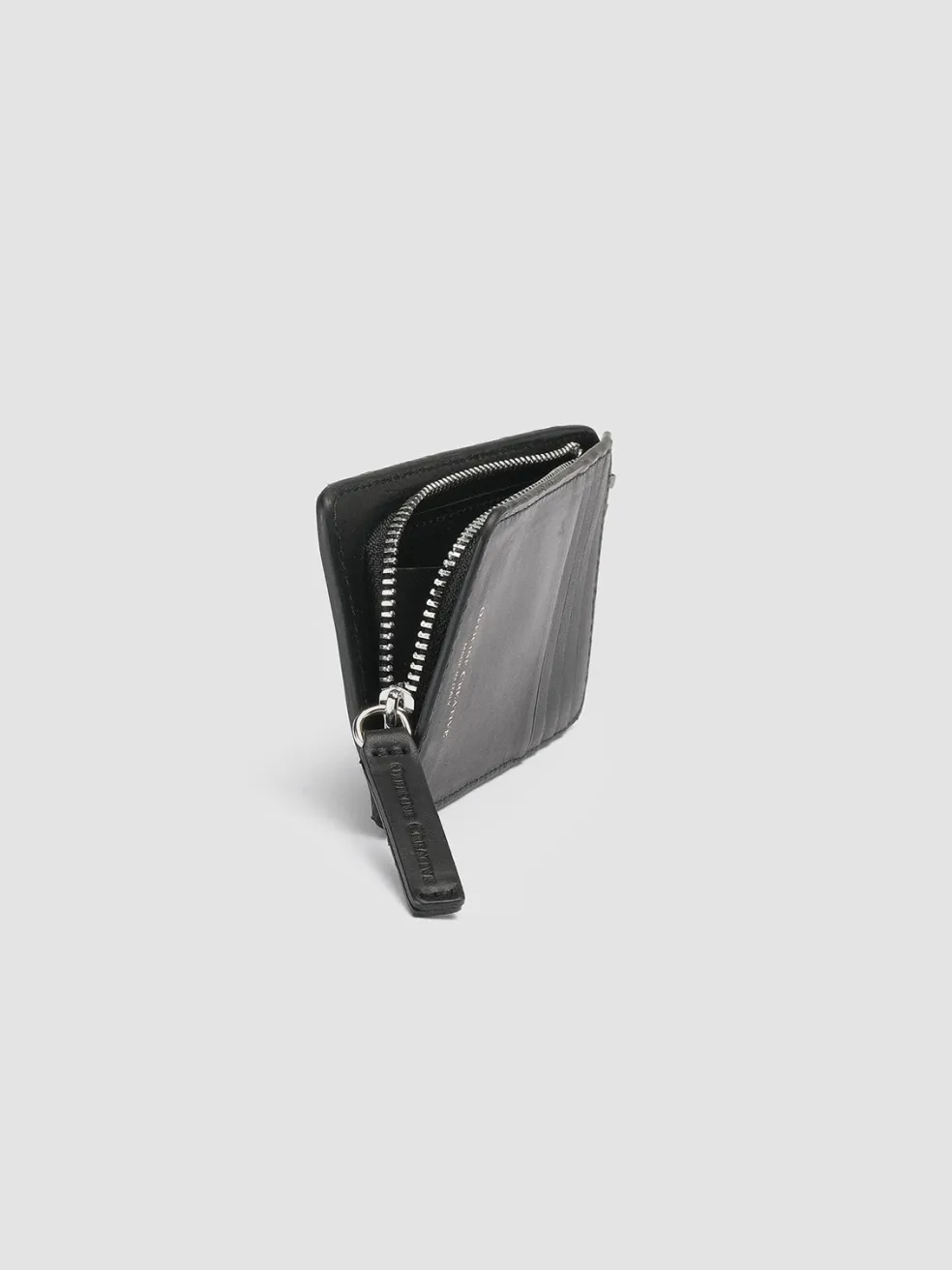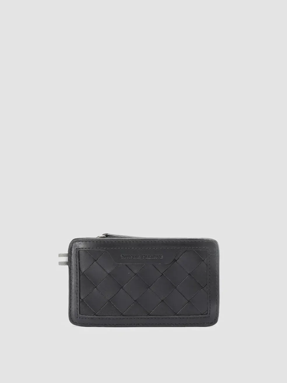 A flawless handcrafted design distinguishes our Bergé card holder in fine black woven and smooth leather. Embellished by the lettering logo embossed at the front tab it has four card slots at the back with gold-tone logo lettering print and a silver-tone metal zipped compartment.
