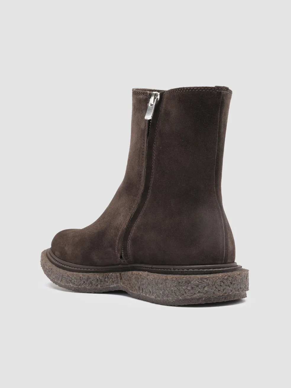 Gritty and truly versatile our zip Bullet ankle boots are expertly handcrafted from supple dark brown suede and defined by a tone-on-tone chunky crepe sole. They feature a rounded toe design flawless stitching.