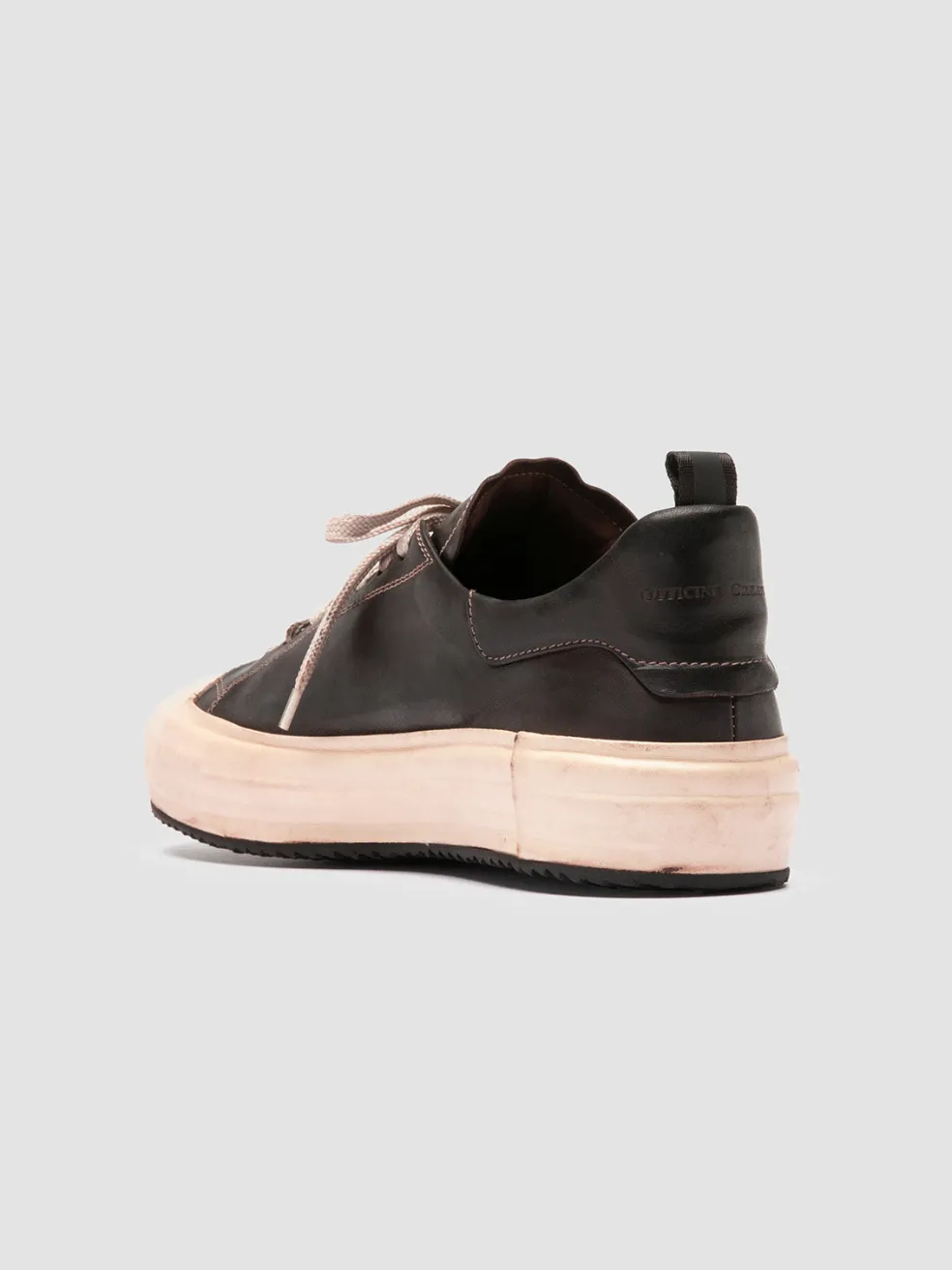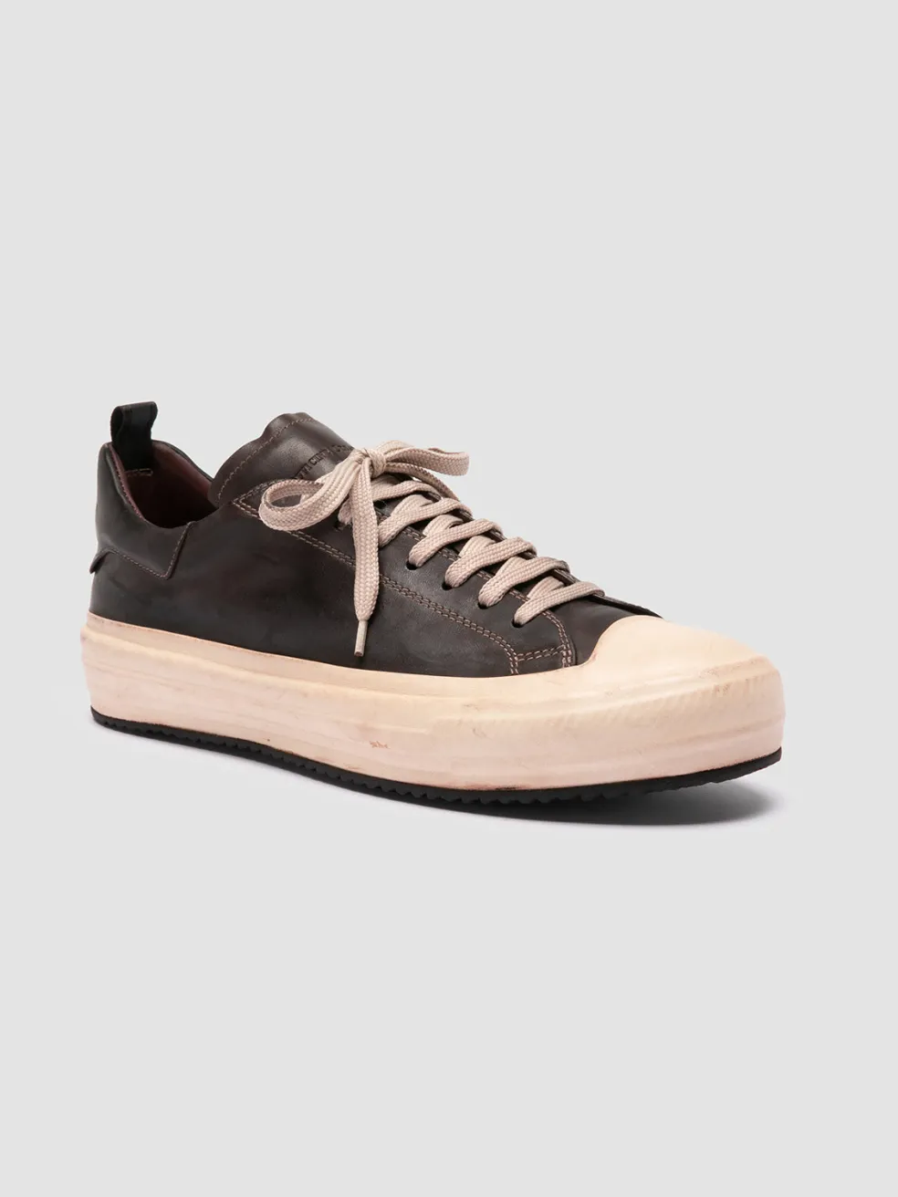 The Mes DD 001 sneakers blend retro charm with luxe craftsmanship. Handmade in Italy from brown leather, they sport a distinct stitched upper with deep-dyed finish, set on an encased rubber sole for effortless aesthetic and comfort.