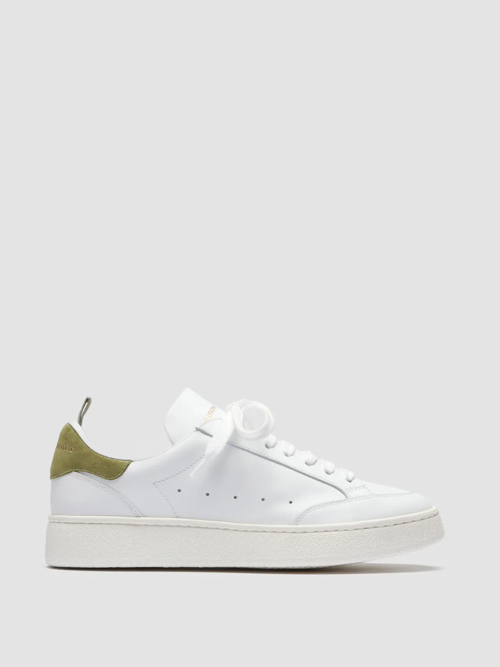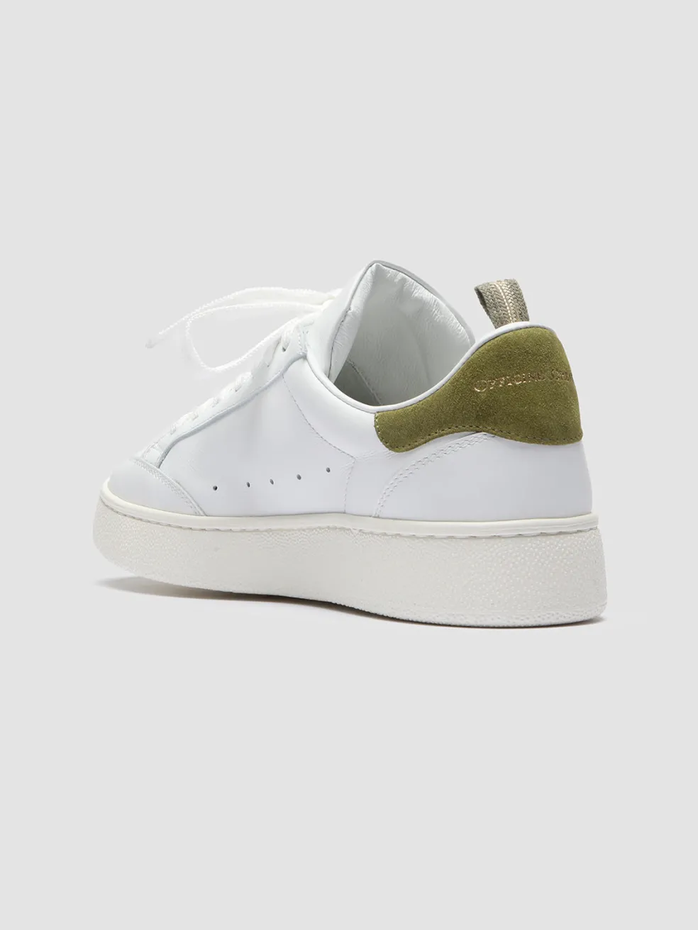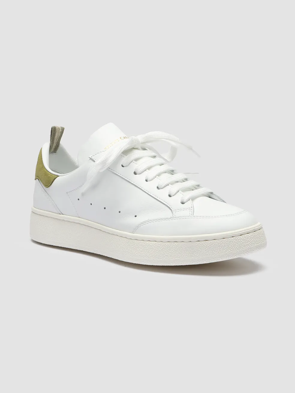 Great to complete your downtown looks around the city, our Mower artisan sneakers are handcrafted from white leather and marked by a green suede heel patch. They feature a rounded toe, front laces, embossed gold-tone lettering logo on the tongue and back, signature grosgrain heel loop tab and rubber sole.