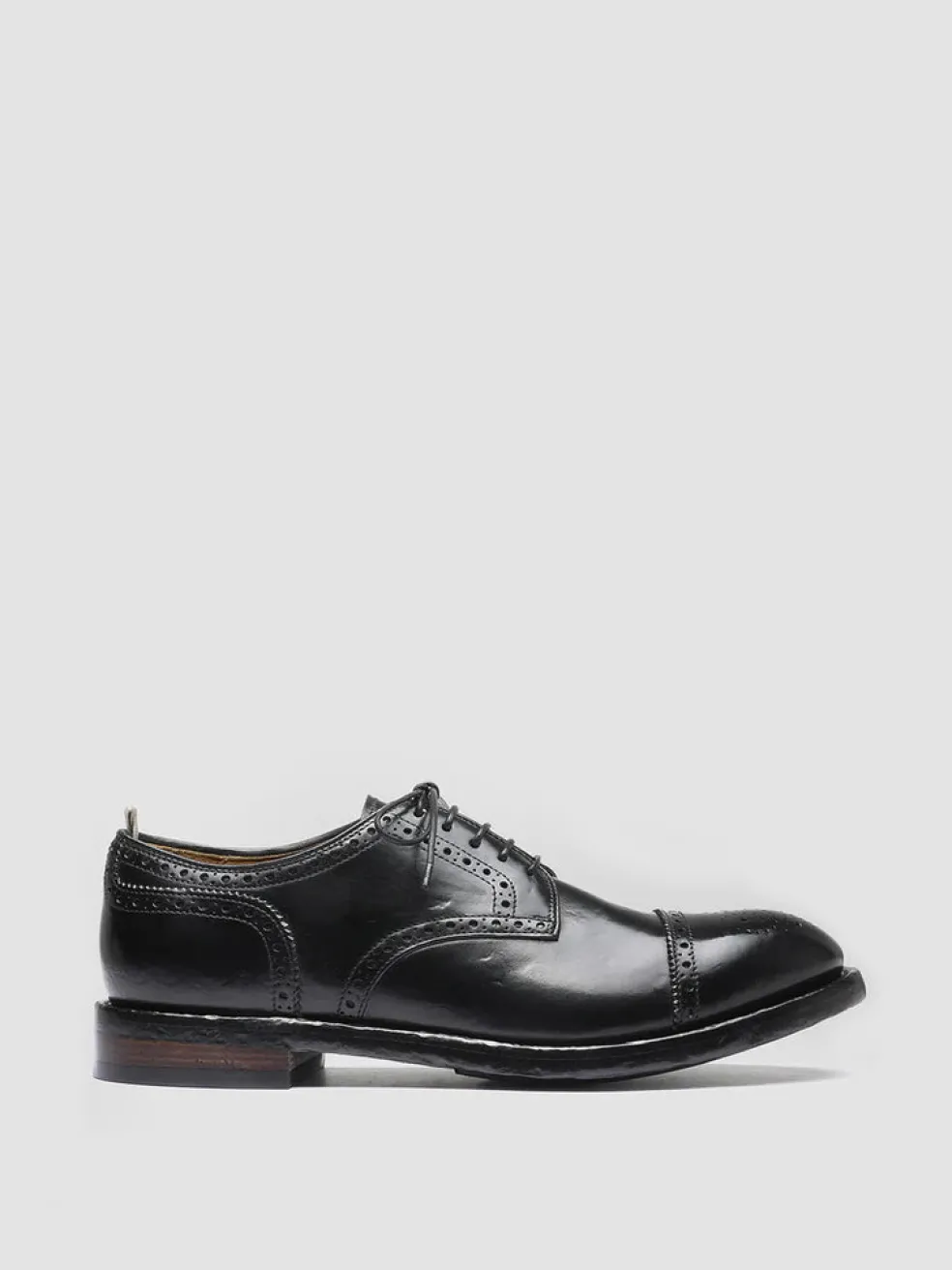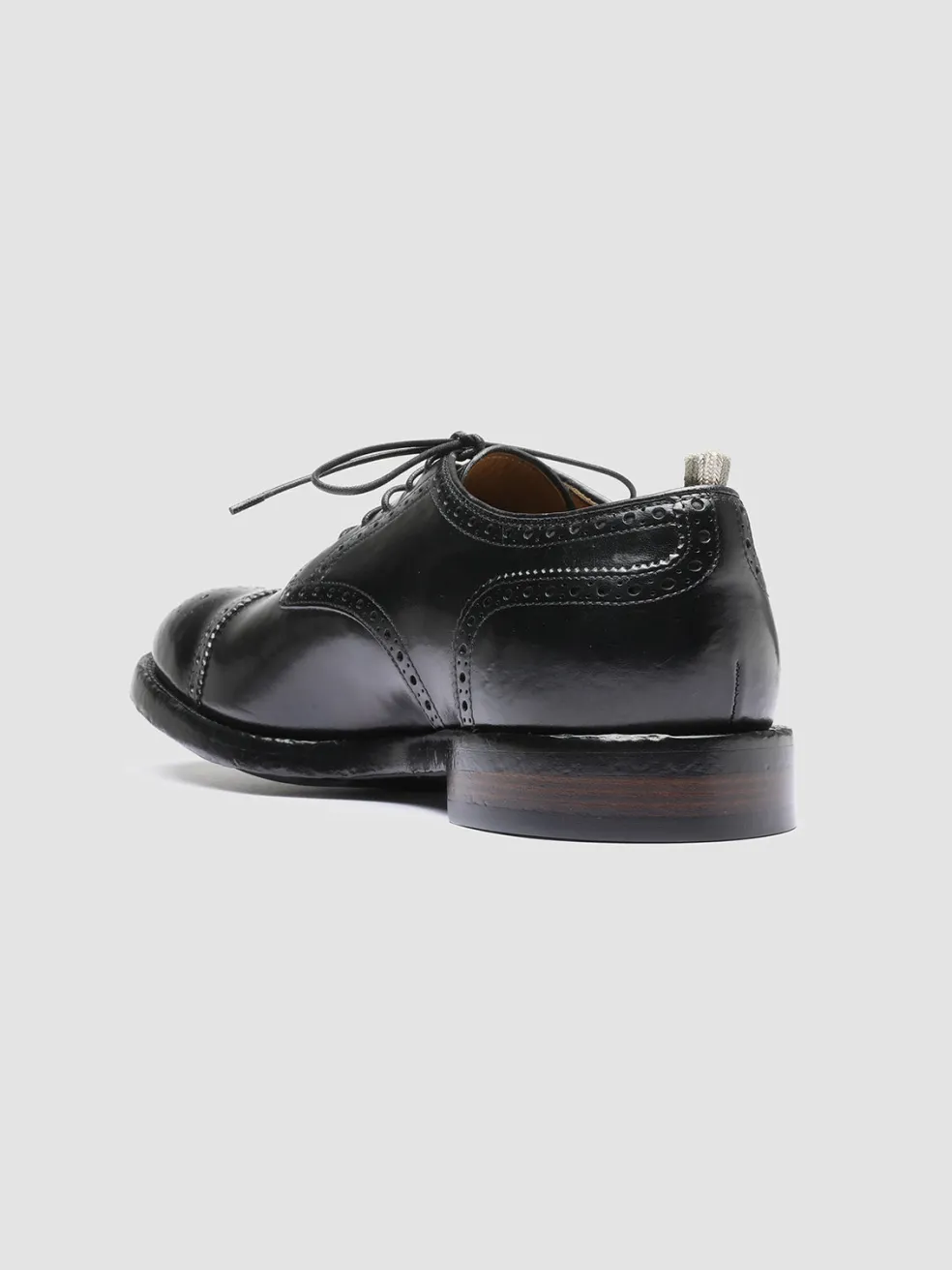 Unique thanks to the flawless airbrushed finish in shades of black our Temple derby shoes are handcrafted from fine smooth leather and reveal an elegant and timeless silhouette. They feature a rounded almond toe thin waxed laces signature grosgrain heel pull tab and a durable leather sole with rubber outsole.
