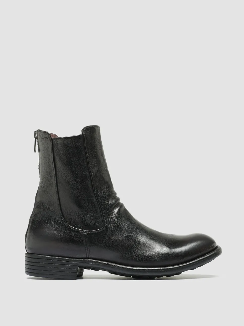 Set on natural rubber soles, our Calixte 049 boots are the ultimate everyday essentials. Crafted from gray leather and individually dyed to accentuate the material’s intricate textures, the final touch involves a distinctive brushing with black wax, imparting a one-of-a-kind hue to the shoe.