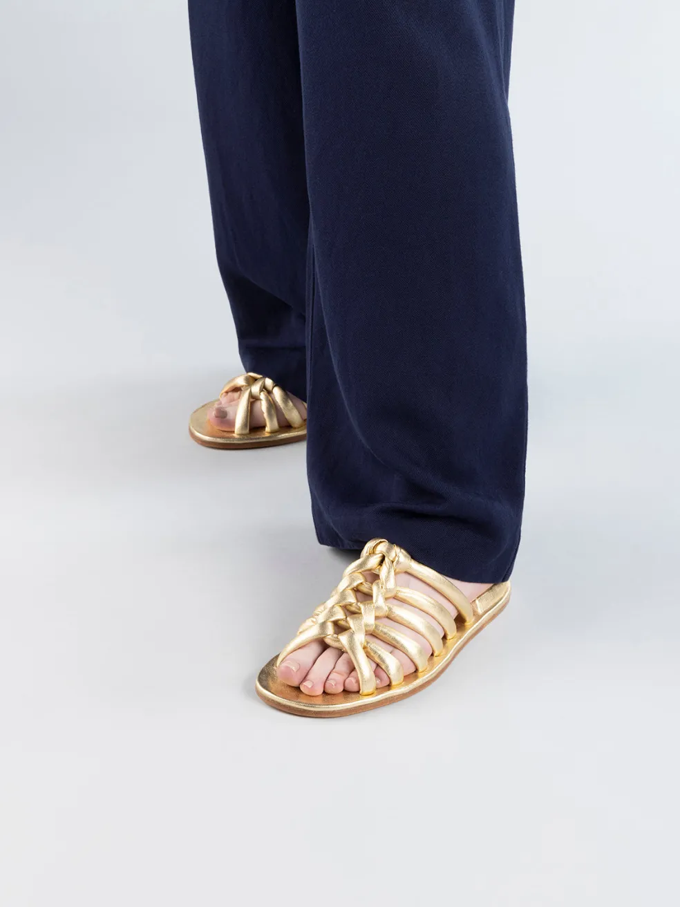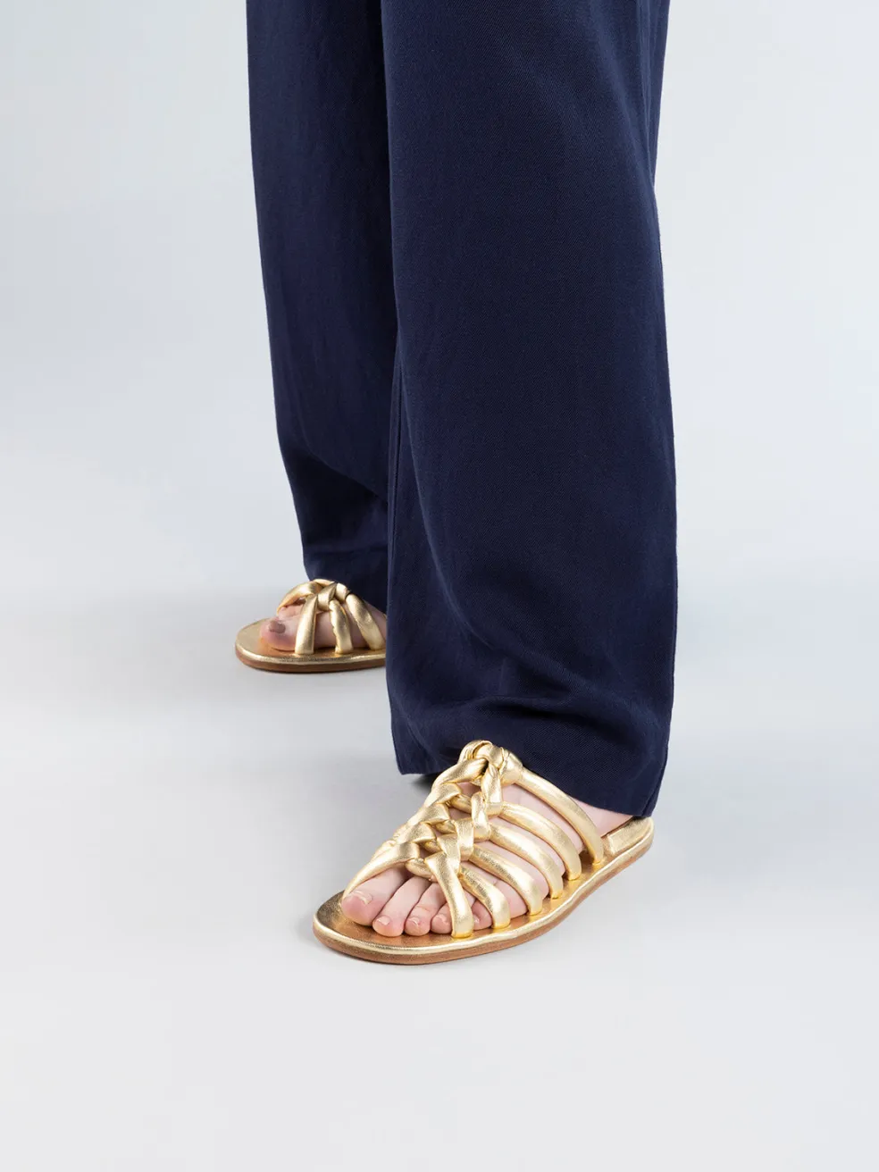 Monolithic design meets cutting-edge craftsmanship. Entirely made in Italy, the Cybille 016 gold sandals challenge conventions with a hand-woven leather upper and the iconic inverted heel encased in nappa leather. Refined elegance and innovation in every detail, for a look that transcends trends.
