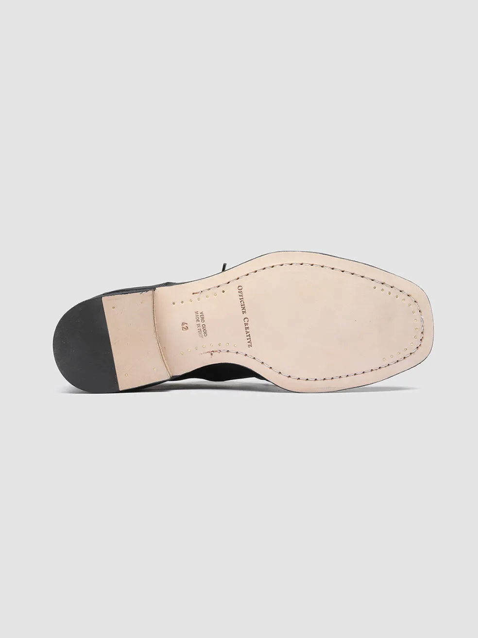 Comfortable lightweight and versatile our Durga ankle boots come in soft black leather. They set on a stacked leather sole with slightly protruding profiles and have a rounded toe thin tone-on-tone waxed laces flawless hand-stitched seams and a comfortable heel loop tab.