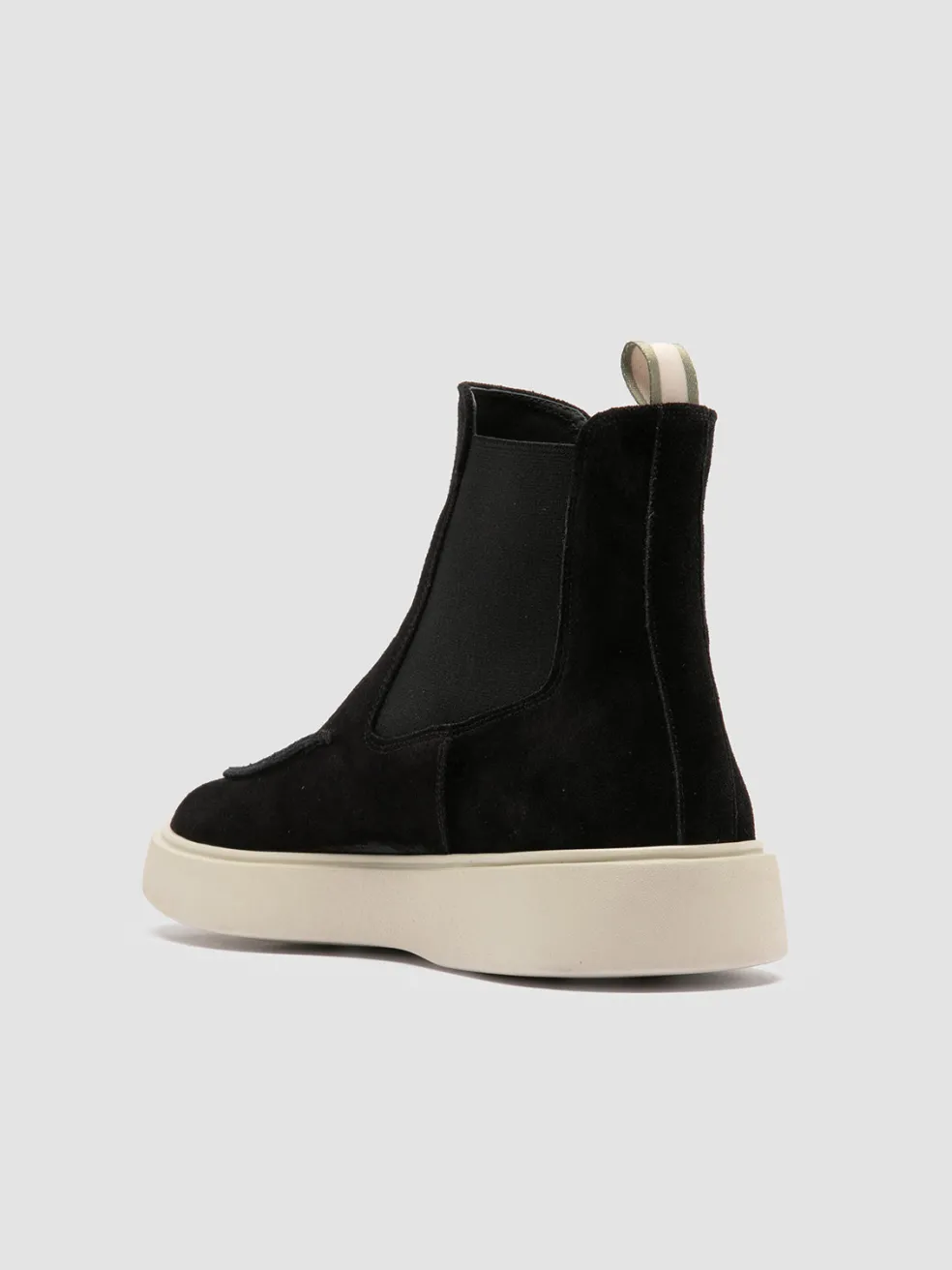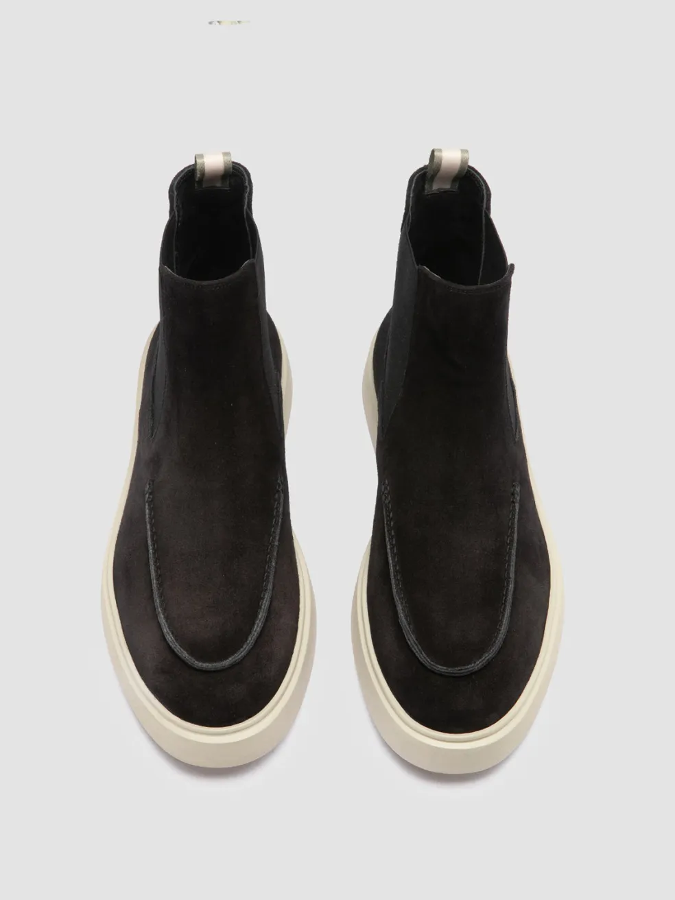 The Frame 003 boots blend a chunky contemporary style with luxurious minimalism. Handmade in Italy, the soft black suede silhouette is accented with few cuts to showcase the quality of the material and rests on a light EVA sole.