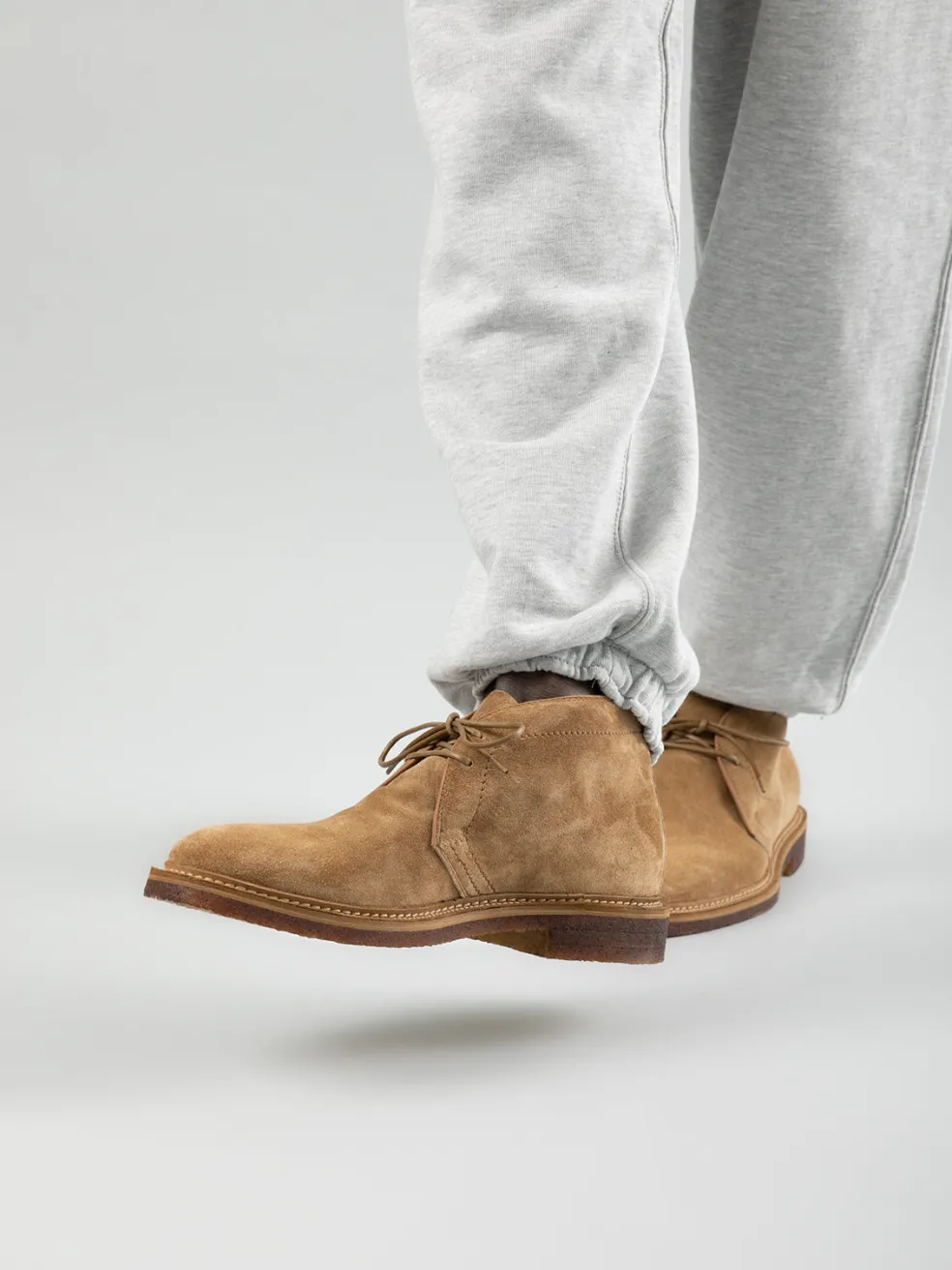 Our Hopkins chukka boots catch the eye thanks to their flawless handcrafted design. Made from premium tan suede, they reveal a comfortable silhouette with rounded toe, thin waxed laces, signature grosgrain back loop tab and a crepe sole.
