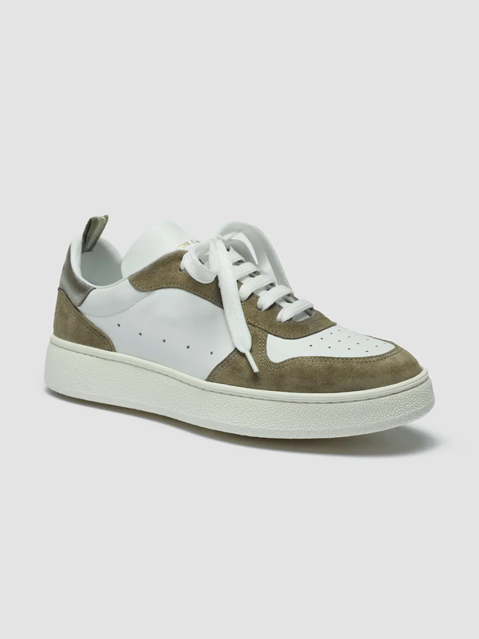 Perfect for everyday wear, our Mower 101 sneakers are made from panels of khaki, silver and white leather that’ll add a touch of colours to any outfit. The toecap and side perforations enhance airflow.