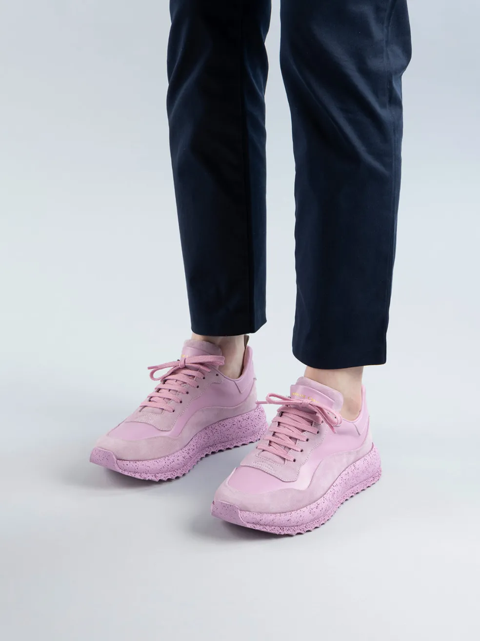 Handcrafted in Italy from vibrant rose leather and suede, the Race Rubrex 101 sneakers radiate a bold and energetic style. Featuring a matching extra-light Rubrex expanded sole, this model offers both standout aesthetics and ultimate comfort, ideal for those who dare to make a statement with their footwear.