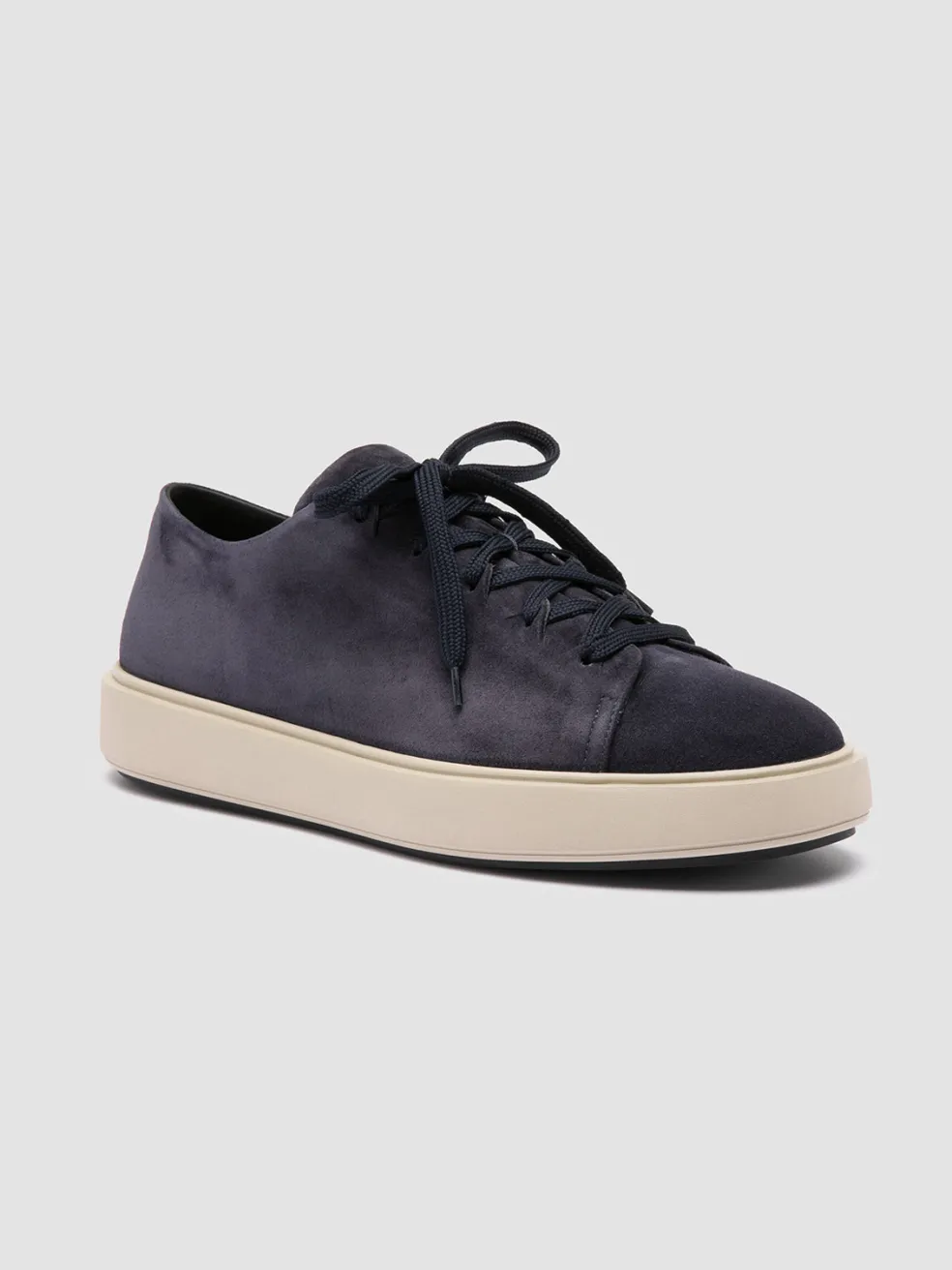 The Remaster 001 sneakers offer a sleek, luxurious and casual aesthetic. Entirely made in Italy, the seamless blue suede construction and handcrafted eyelet details showcase a clean, tailored silhouette set on a light EVA sole.