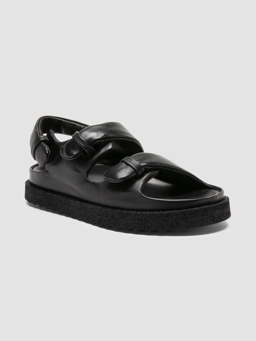 Embrace minimalist boldness with the Sands 102 sandals. Handcrafted in Italy in exquisite black leather, they present a monolithic design that commands presence, with clean lines and a dynamic loop closure. The Rubrex sole is a testament to durability, merging seamlessly with the model’s powerful aesthetic.
