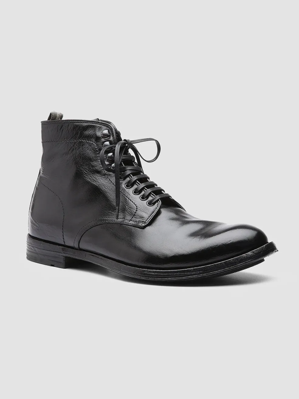 Thanks to their comfortable and timeless design our Anatomia boots are the style to focus on. They are handcrafted from fine and very soft black leather and feature an almond-shaped silhouette front lace-up signature grosgrain heel pull tab and a leather sole with a low stacked heel and rubber inserts.