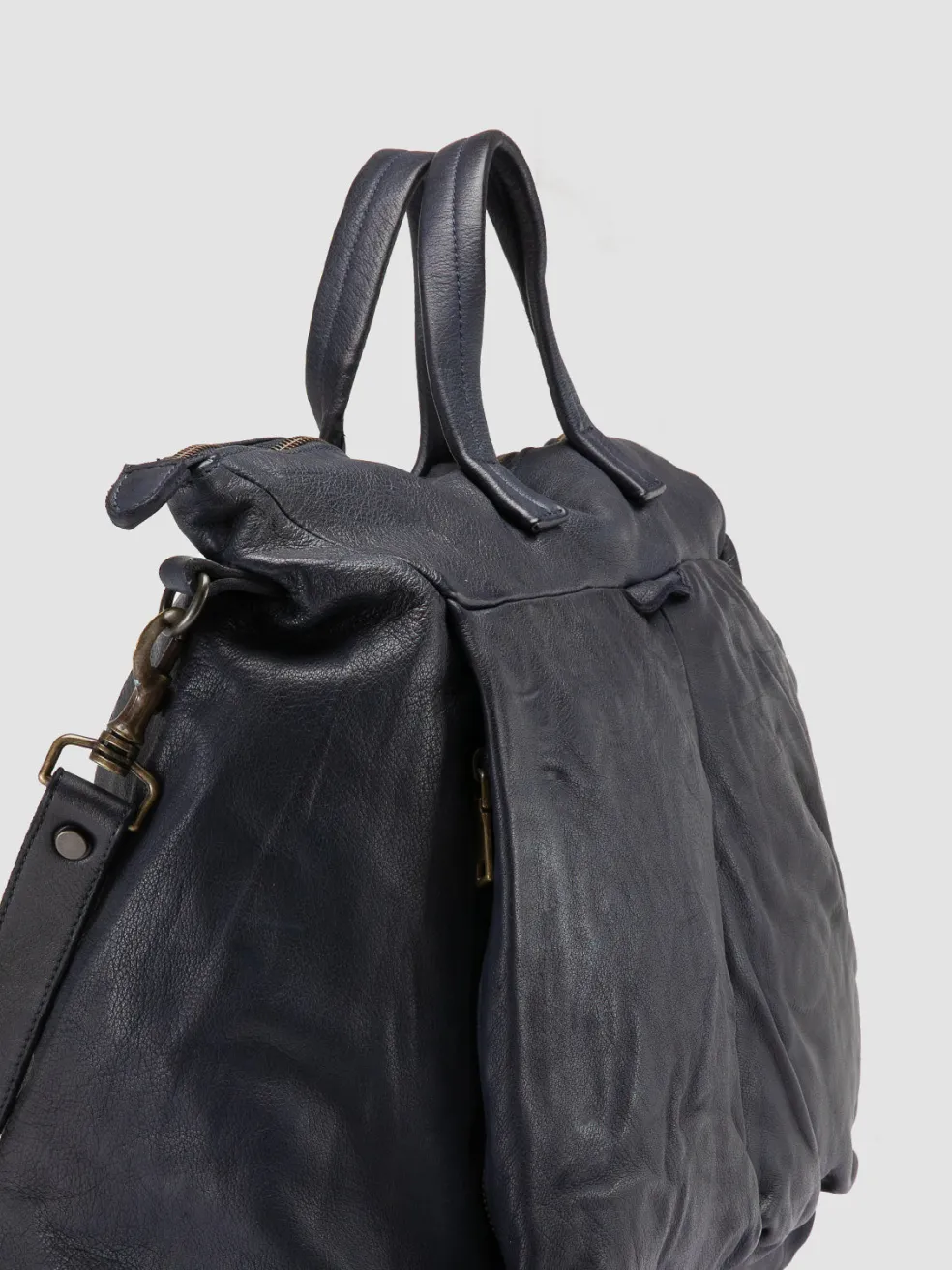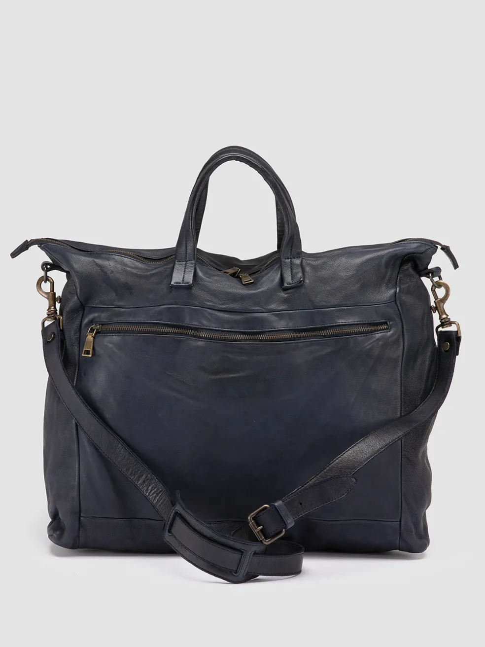 Embodying the essence of classic travel luxury, the Helmet 044 weekender is handcrafted in Italy in rich blue leather. The design features a spacious interior with multiple pockets, top handles and a detachable strap.