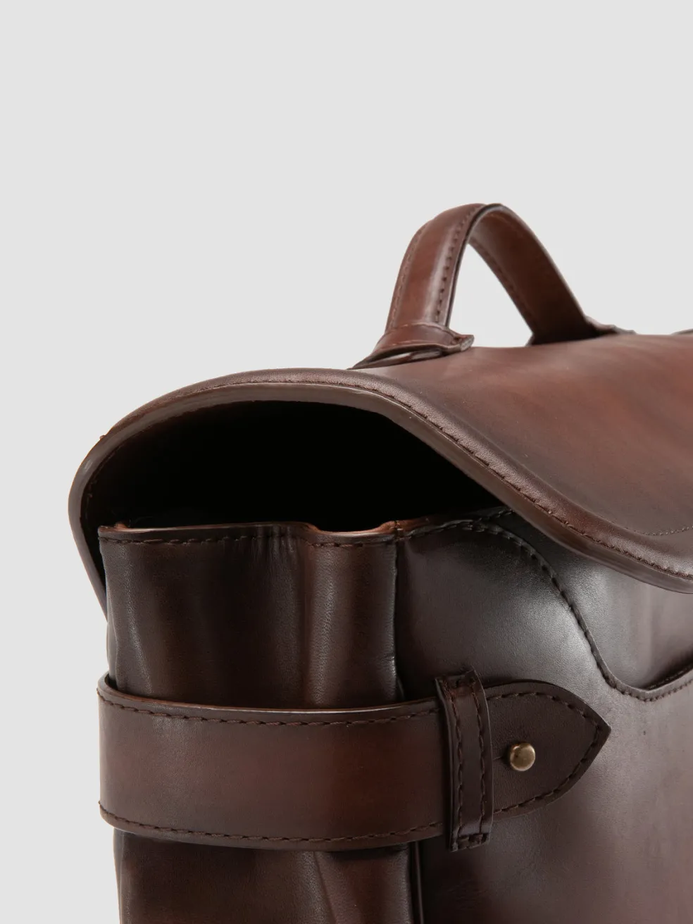 The Jerome 003 briefcase merges timeless flair with functional design. Handmade in Italy in brown leather, it features a top handle, a secure front clasp and a structured storage space, perfect for the discerning professional.