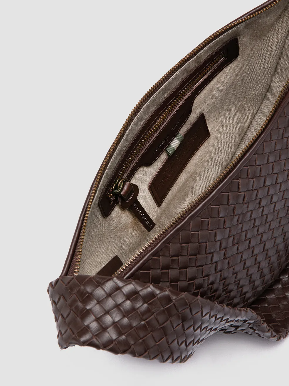 The OC Class 068 brown crossbody bag showcases traditional craftsmanship with a modern edge. The handwoven brown leather body offers a luxurious tactile experience, while the adjustable shoulder strap ensures functionality.