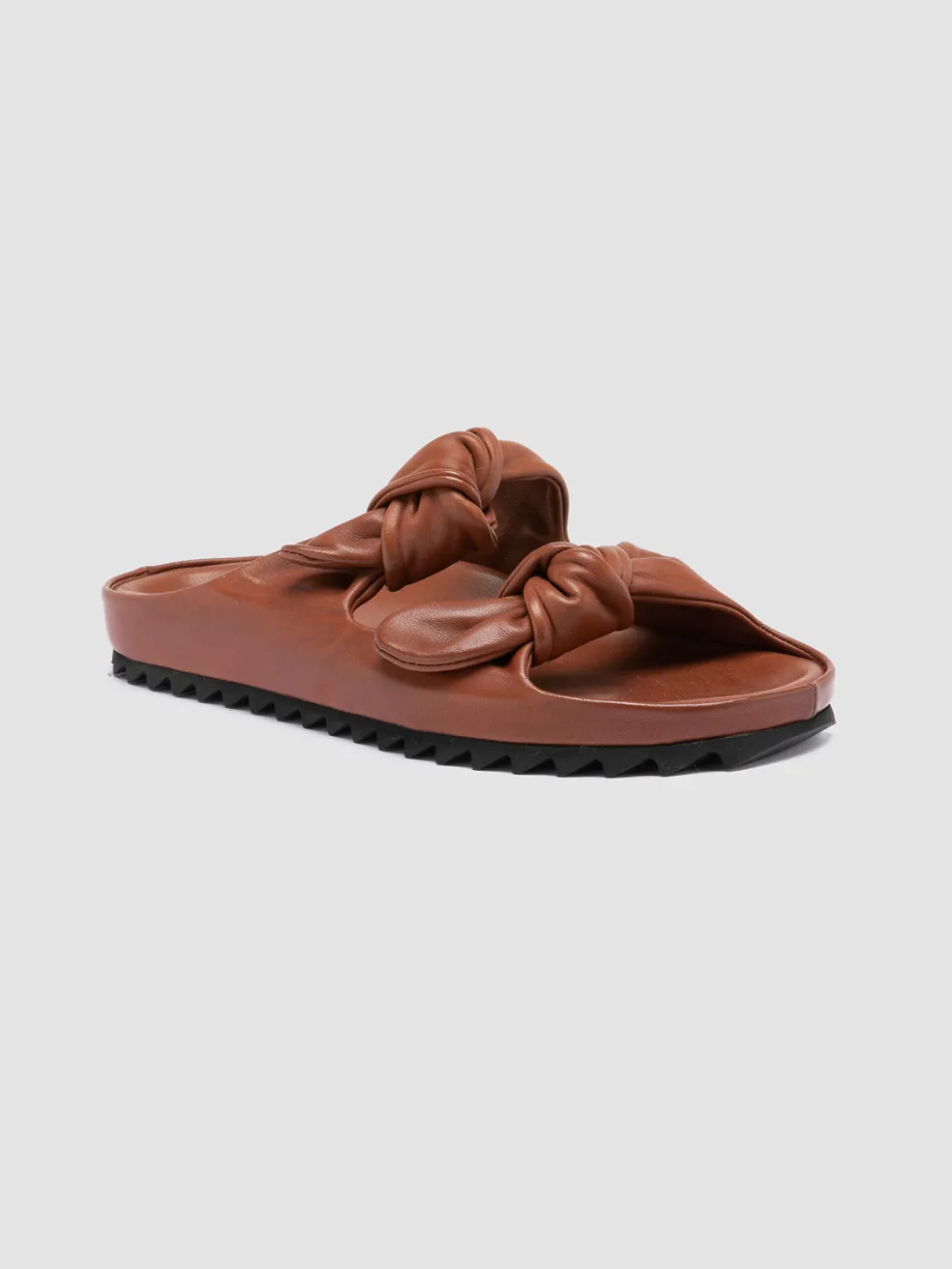 A clean, essential design and an incredible attention to detail characterize our Pelagie sandals. Handcrafted in Italy using the highest-quality vegetable tanned leather, these slides feature a rounded toe with two knot straps and a tread rubber sole, for a comfortable wear.